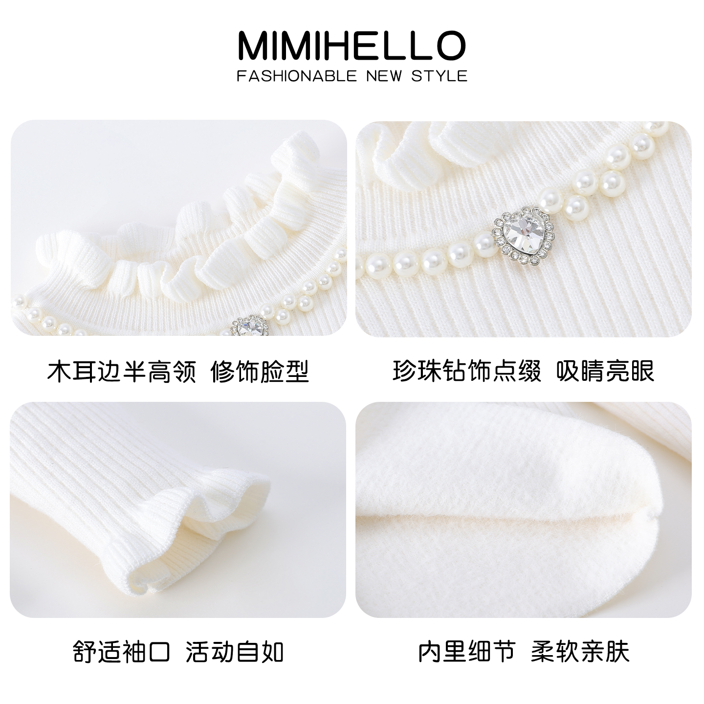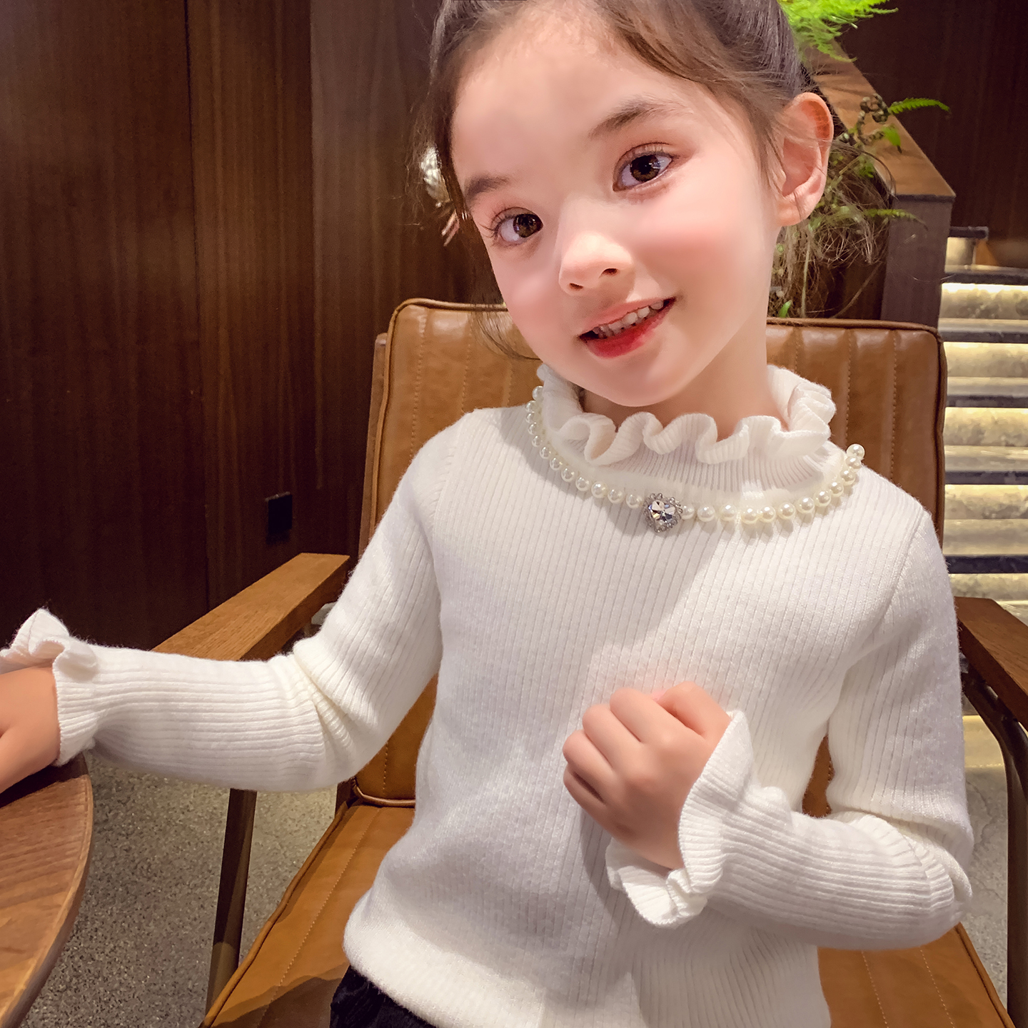 小女孩百搭打底衫 女童毛衣冬装 珍珠花边领针织衫 儿童韩版 2025新款