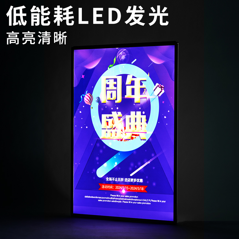 led超薄抽画灯箱广告牌挂墙式 发光钢化玻璃海报菜单插画展示定制