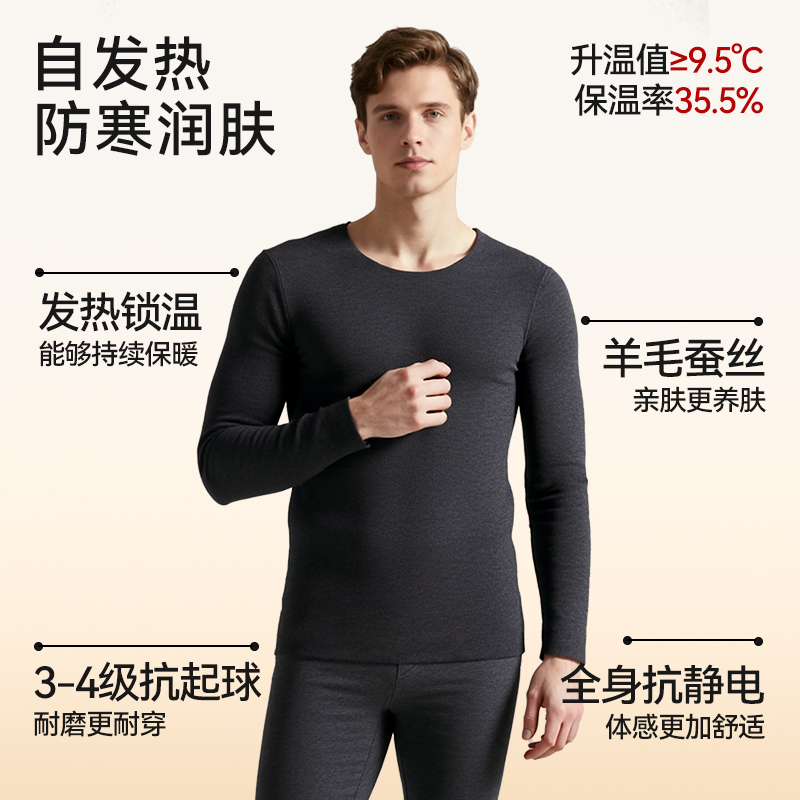 保暖套装 俞兆林7A抗菌羊绒蚕丝贴片男女同款 香菇双十一