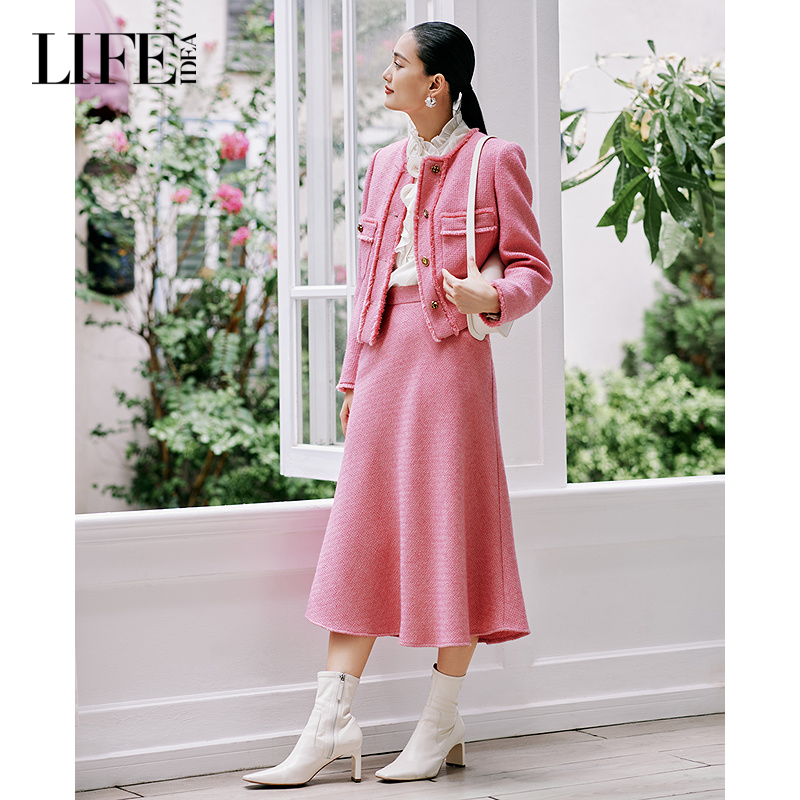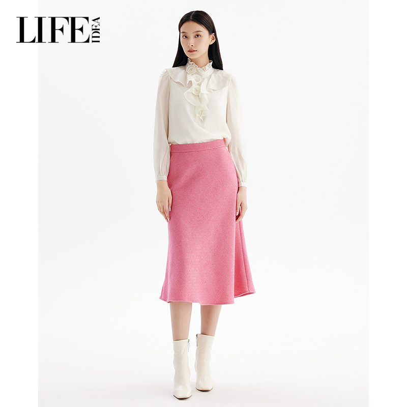 A字鱼尾裙优雅半裙 毛呢中长半身裙经典 莱芙·艾迪儿25秋季 新款