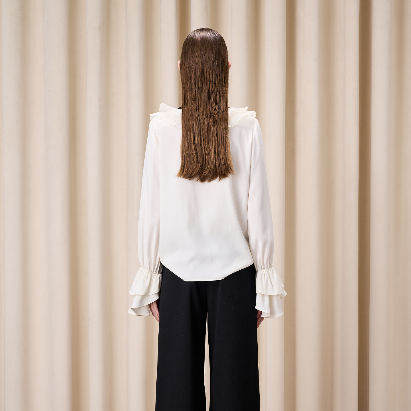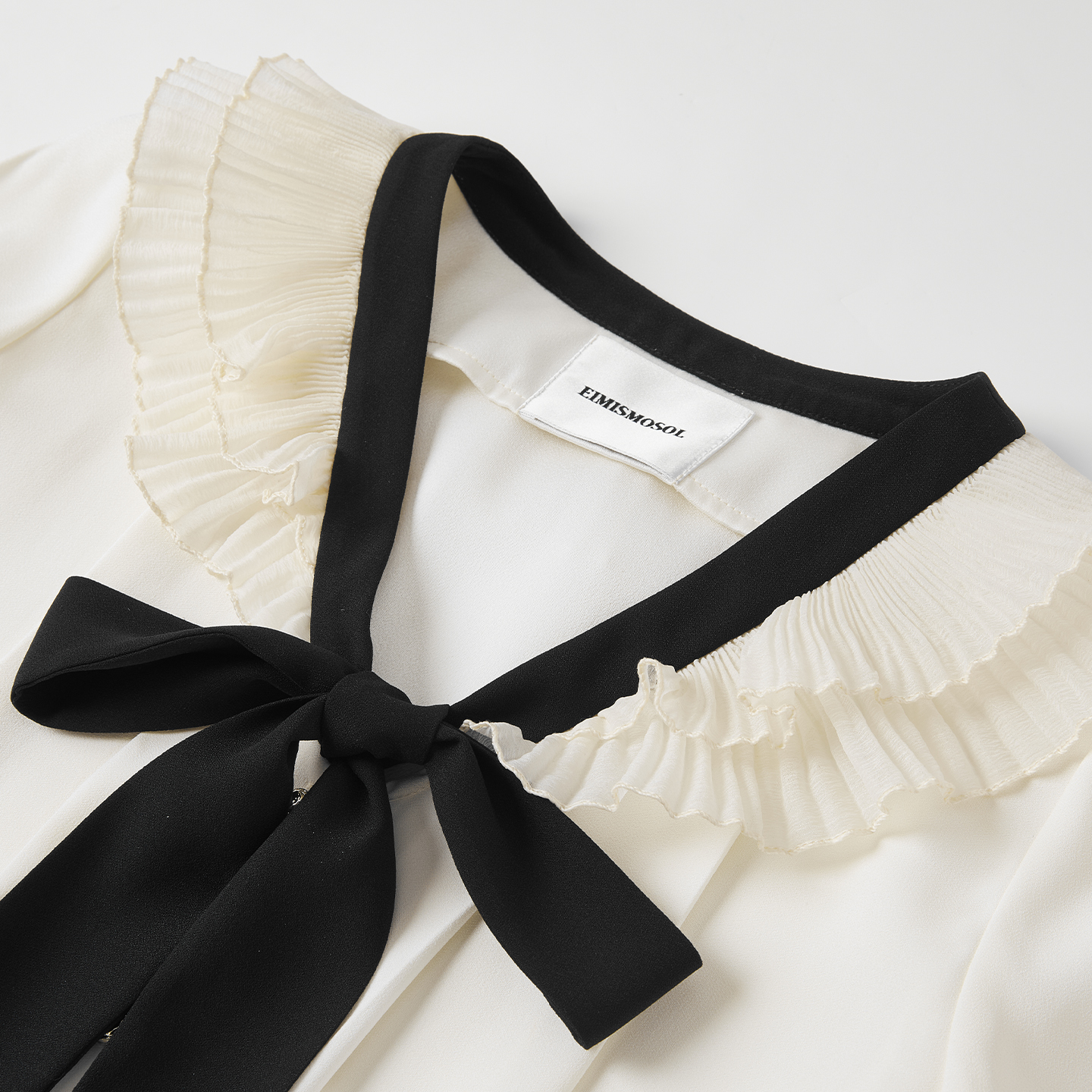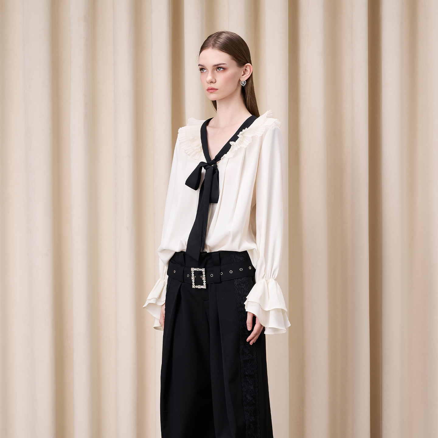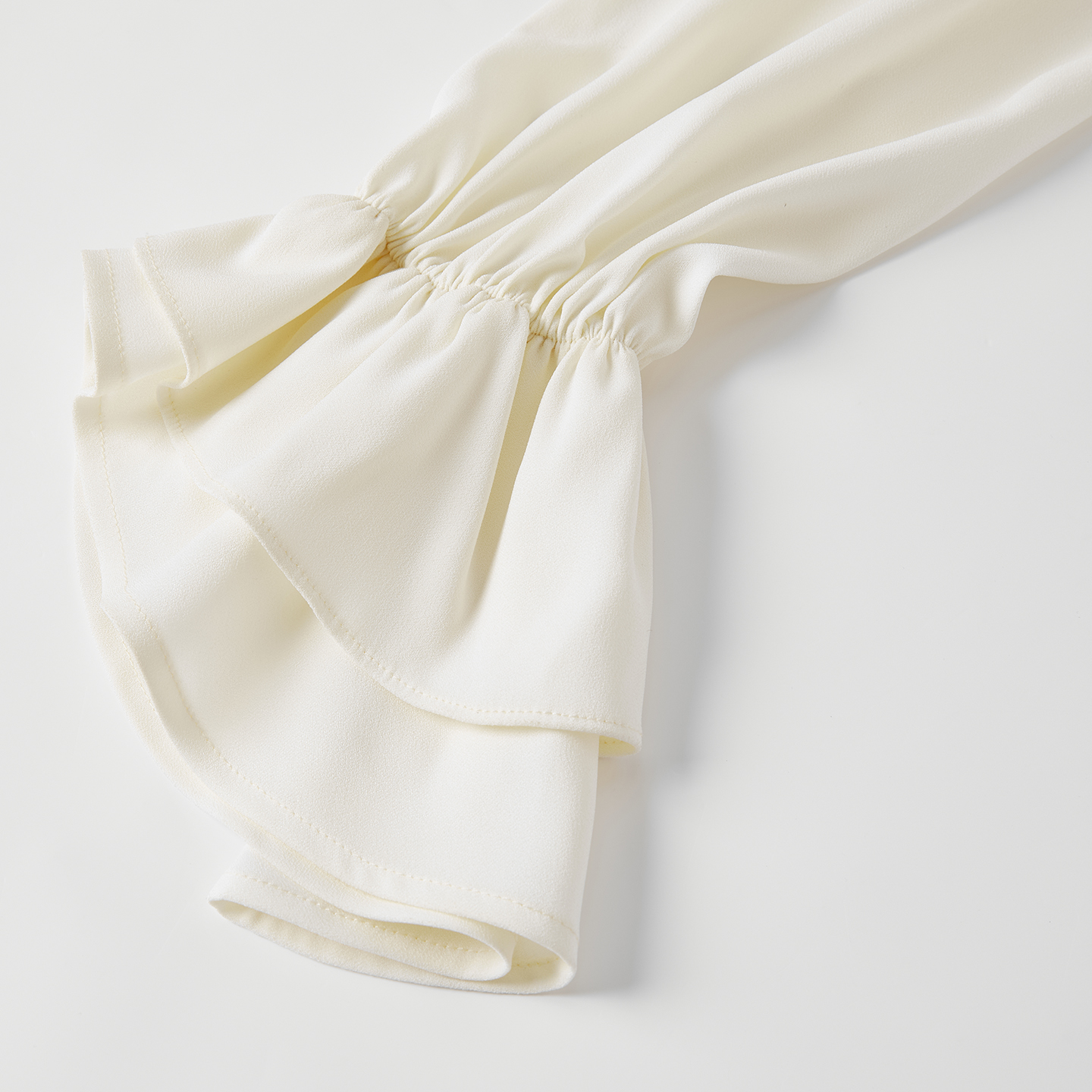 设计感小众甜美气质莱赛尔上衣 早秋季 粉色木耳边露肩挂脖长袖 衬衫