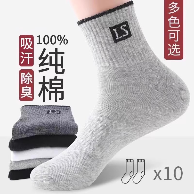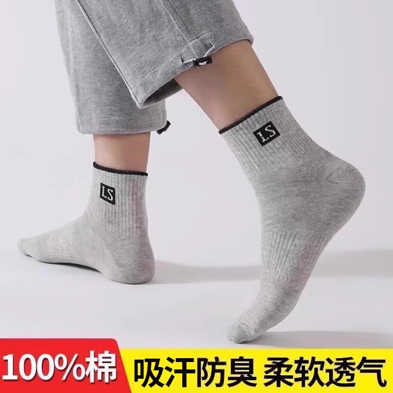 百搭棉质运动男 防臭吸汗抗菌四季 精梳棉袜子男款 中筒袜春夏秋冬款