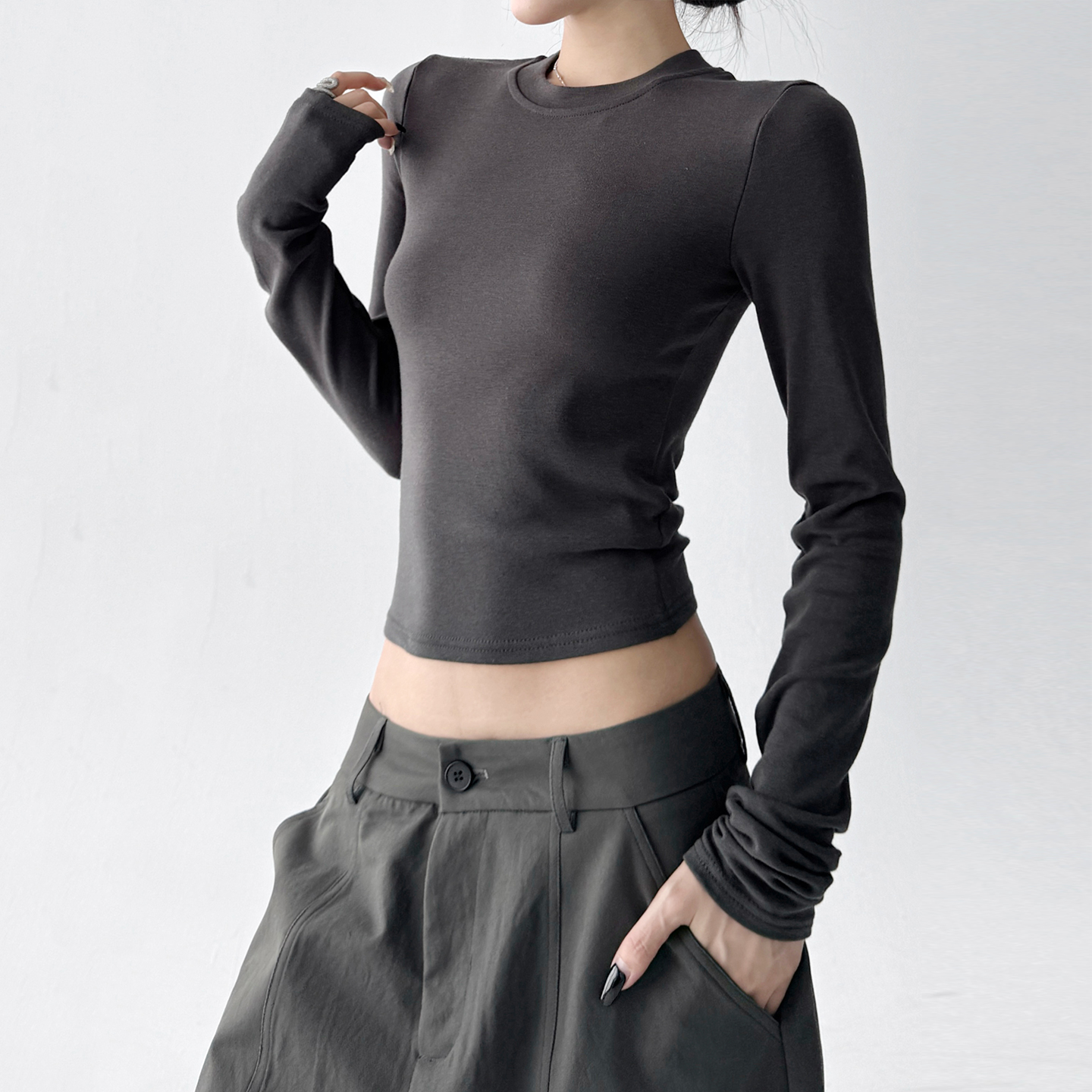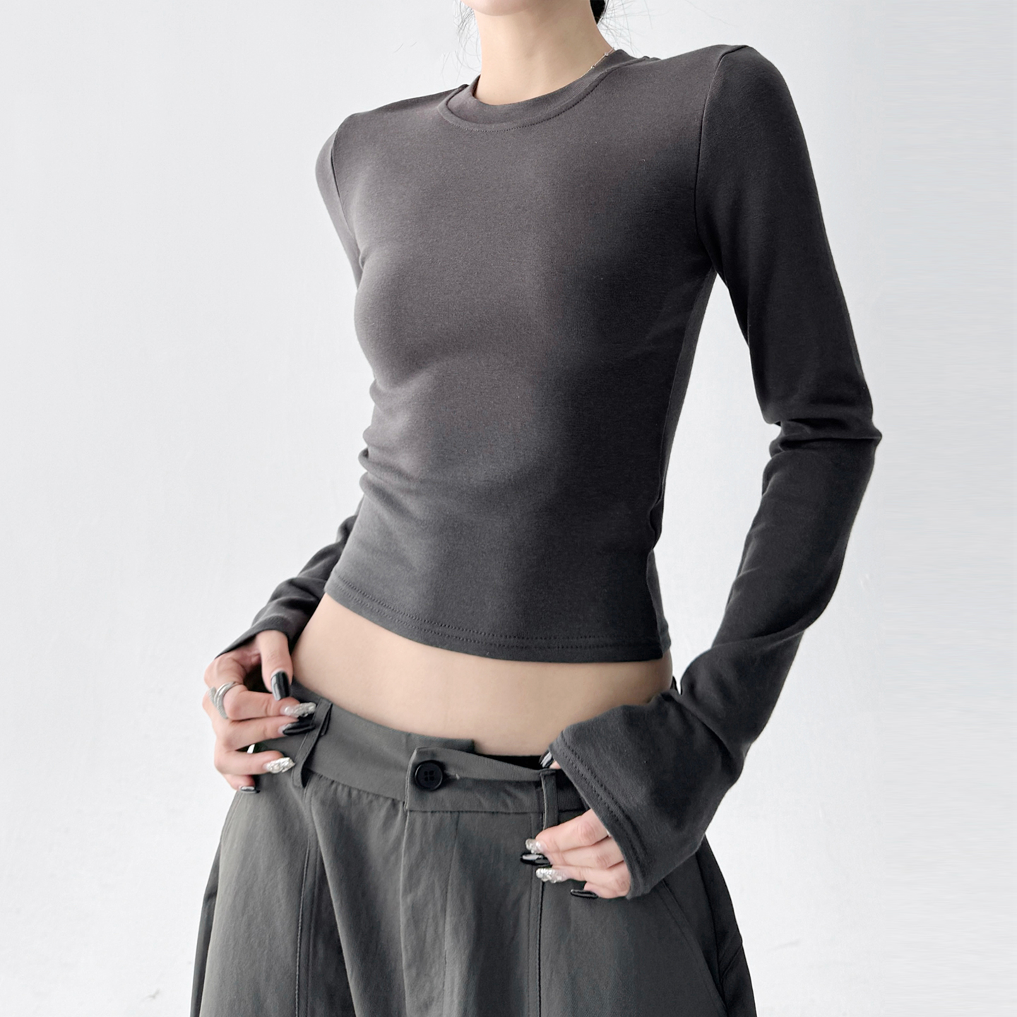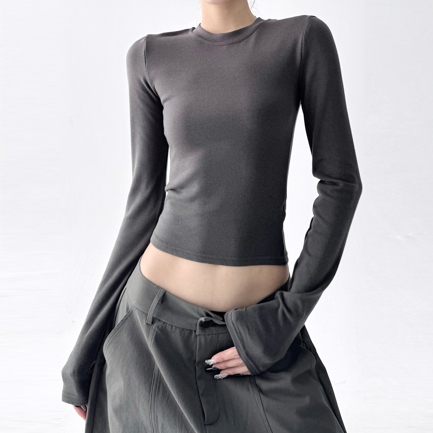 显瘦百搭高级感打底衫 深灰色长袖 修身 新款 上衣潮 T恤女2025春秋季