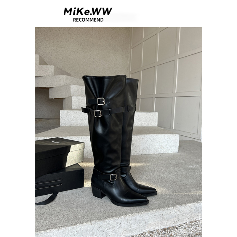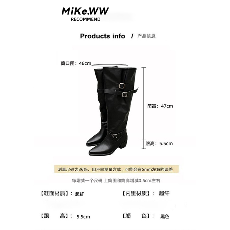 2025秋冬新款 大筒围堆堆靴粗跟尖头骑士靴辣妹宽筒长靴高跟黑色
