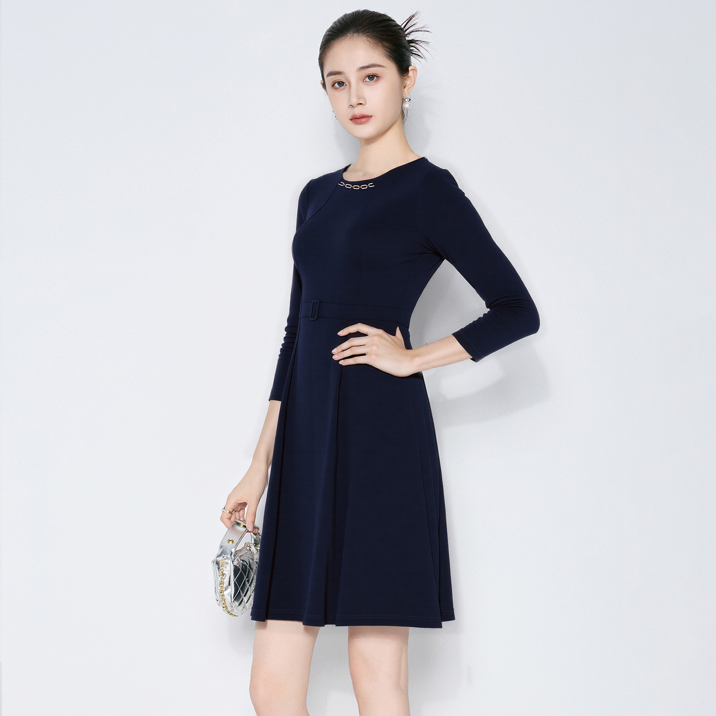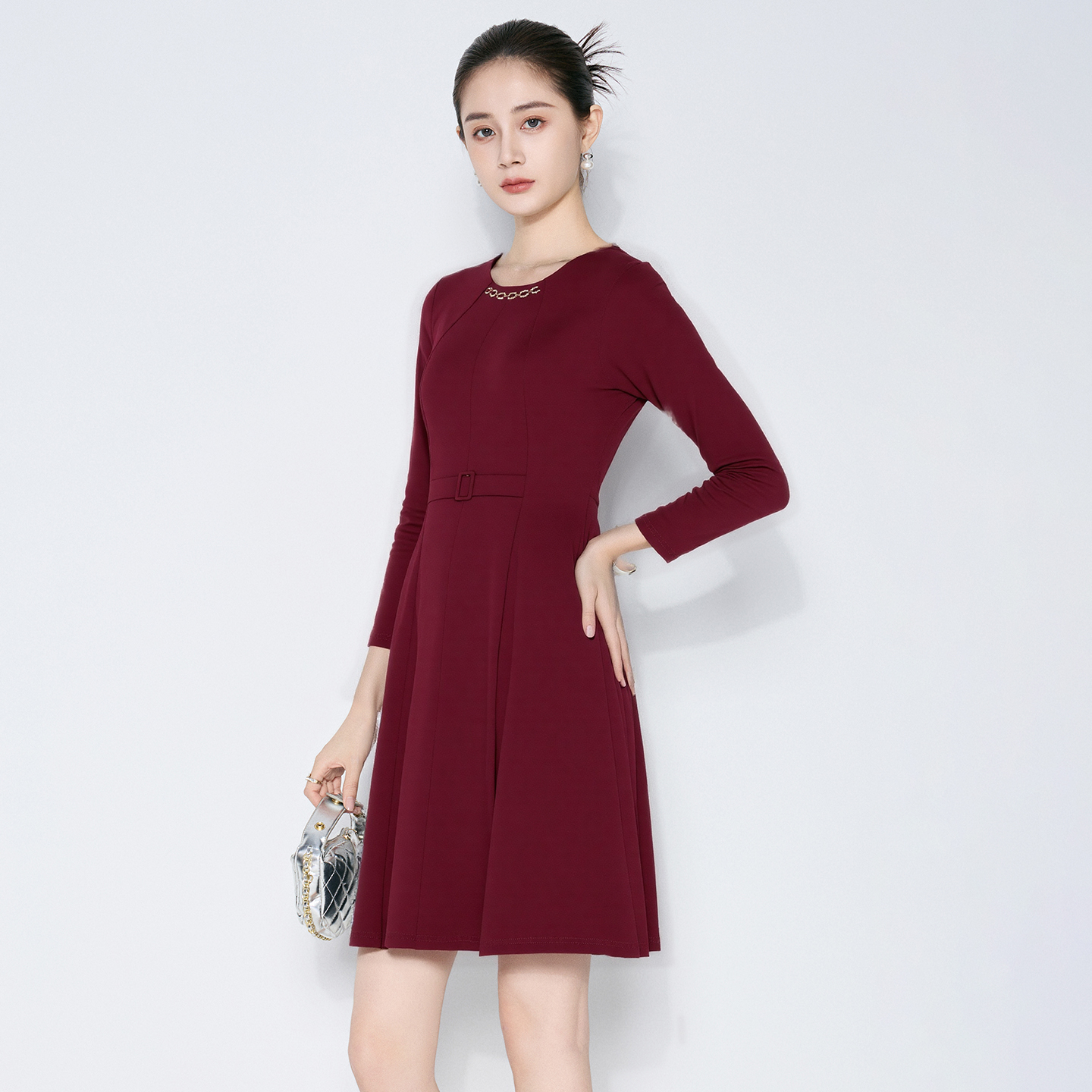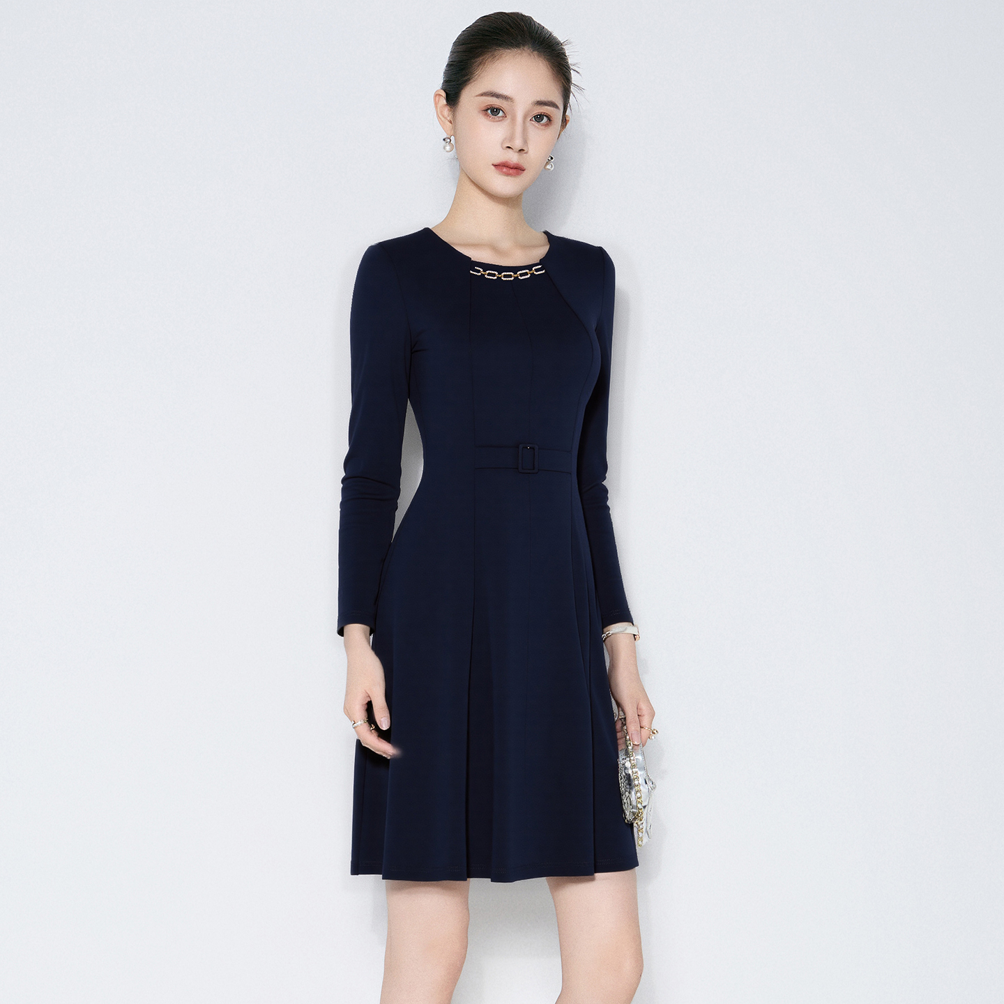 M2女装 中年妈妈弹力收腰显瘦H型系带提花连衣裙 2025春秋宽松大码