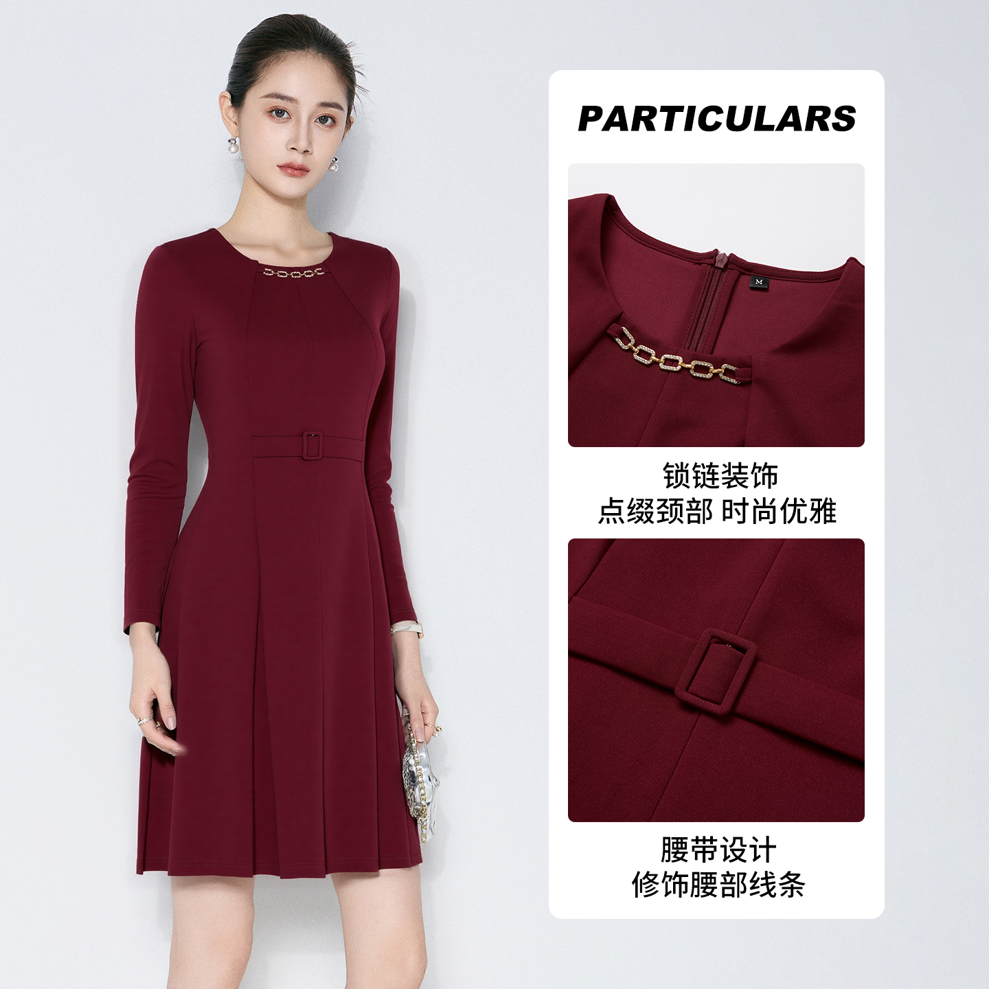 红裙 新年结婚订婚礼服裙子长袖 DPLAY2025年秋季 红色连衣裙女法式
