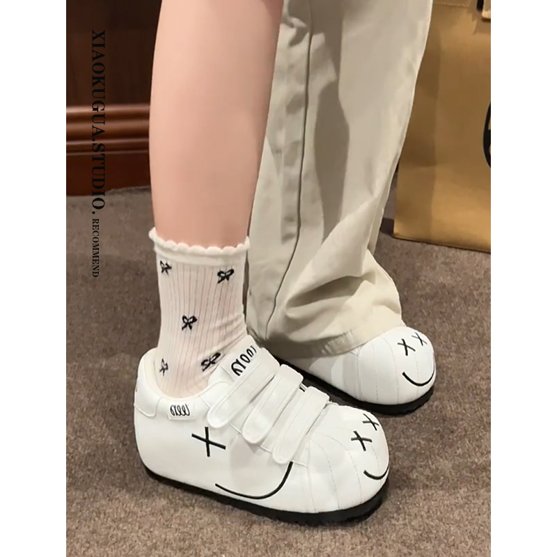 运动小白鞋 魔术贴面包大头鞋 休闲板鞋 夏秋厚底增高鞋 子 女2025新款