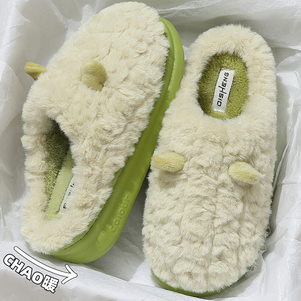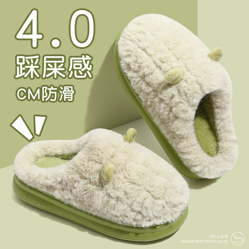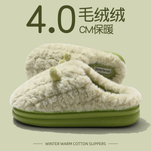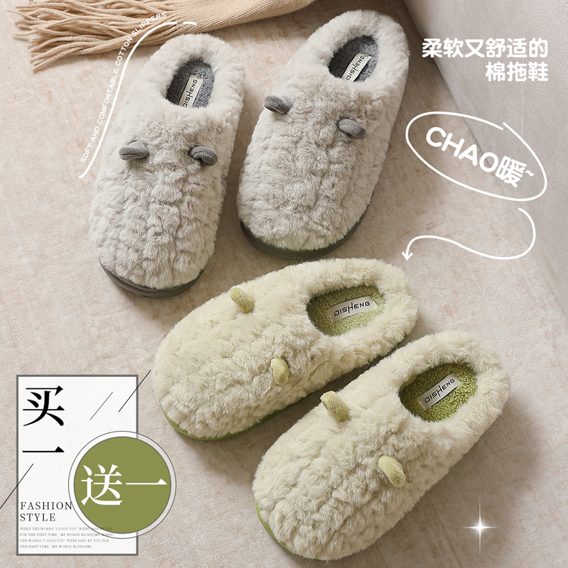 红豆买1送1棉拖鞋 室内家居情侣一对保暖防滑厚底毛毛绒男 女士冬季