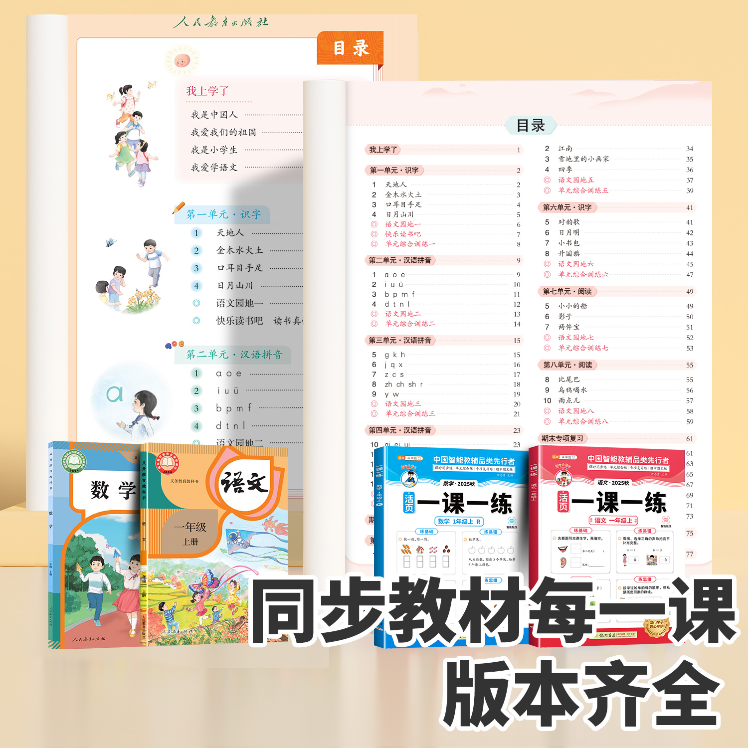 黄冈小状元 苏教北师大版 同步训练每日一练 斗半匠一年级上册一课一练活页卷同步练习册语文数学同步练习二上小学教材人教版 2025新版
