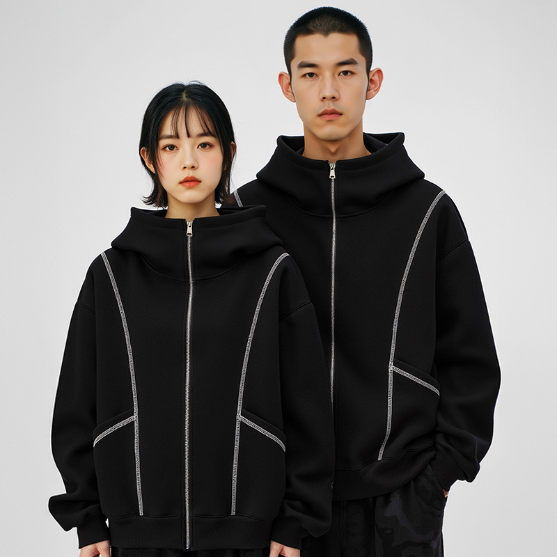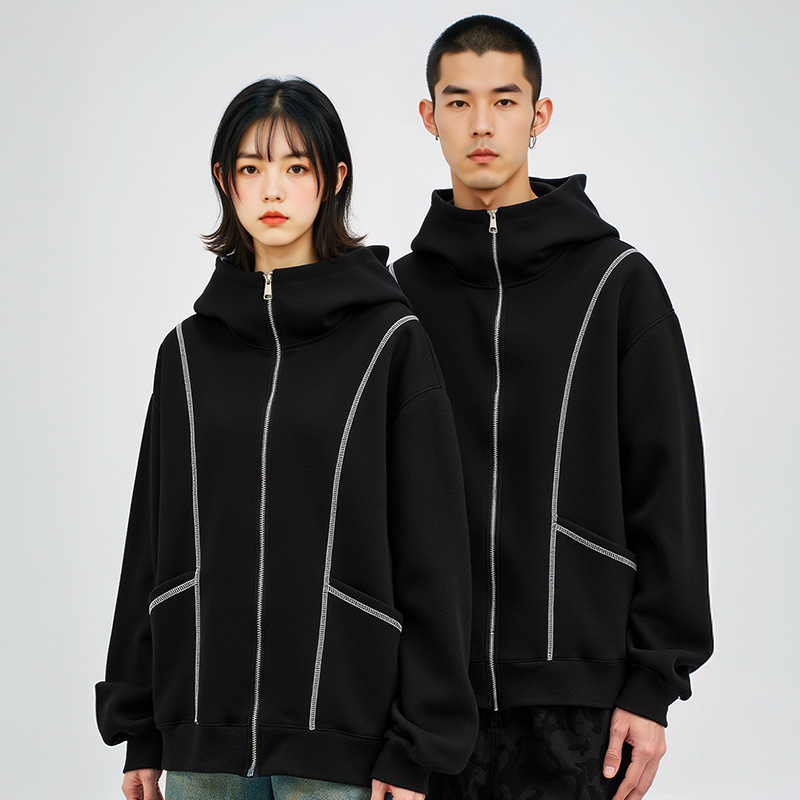 品牌男装 开衫 美式 男装 拉链情侣卫衣外套春秋款 重磅加肥加大码