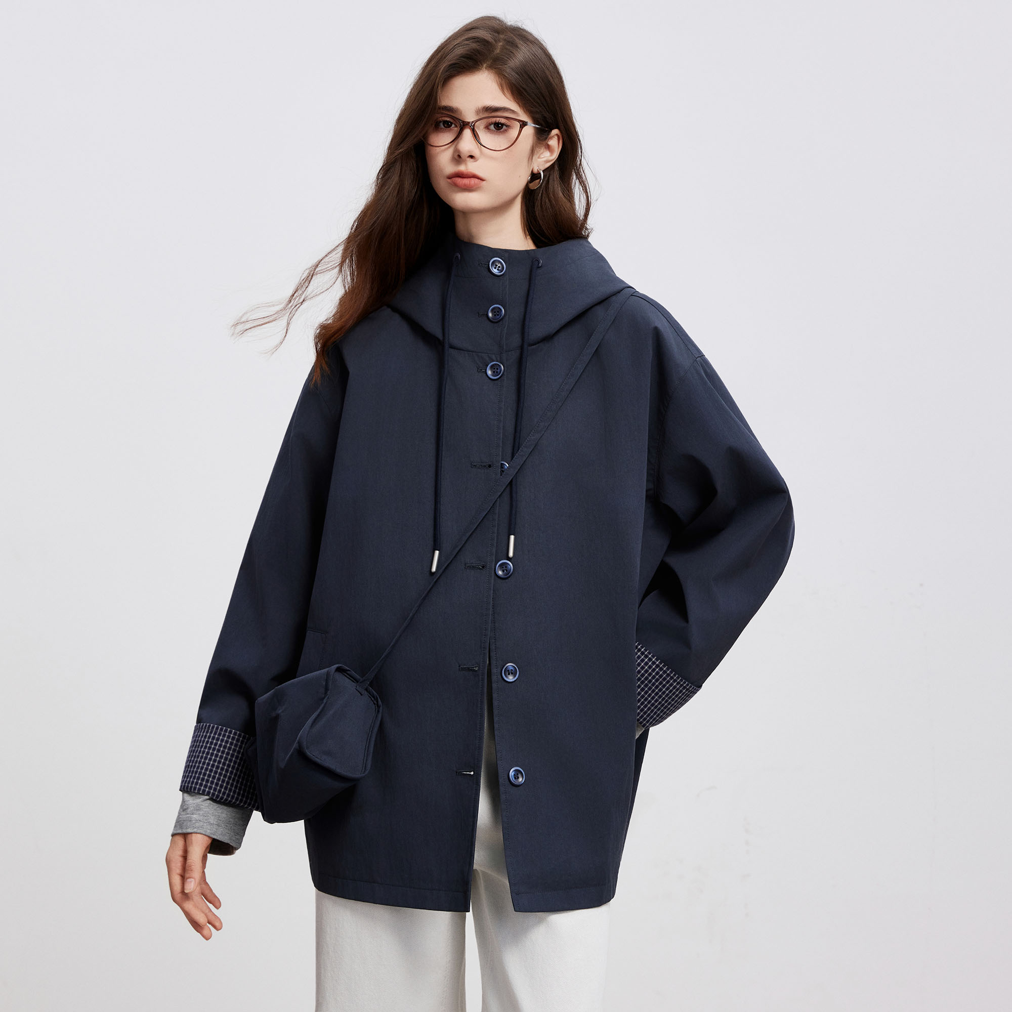 骆驼运动风衣女2025秋冬新款 百搭 梭织连帽外套防泼水夹克简约时尚