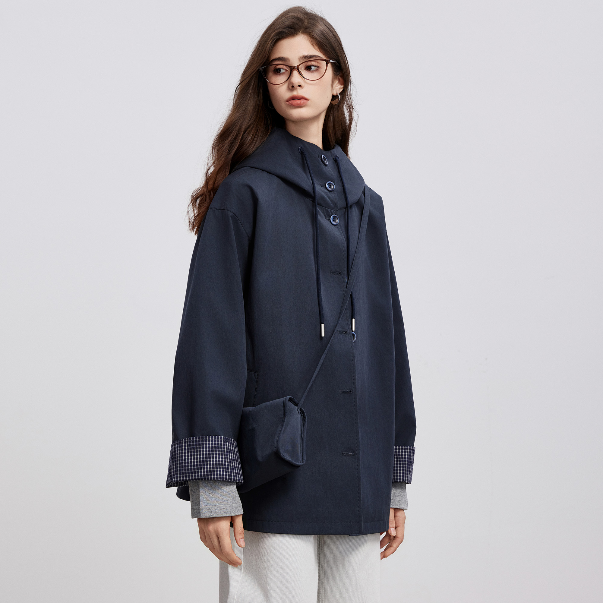 新款 LEDIM 卡其色风衣外套女2025秋季 双色连帽阔版 上衣 WANG红标