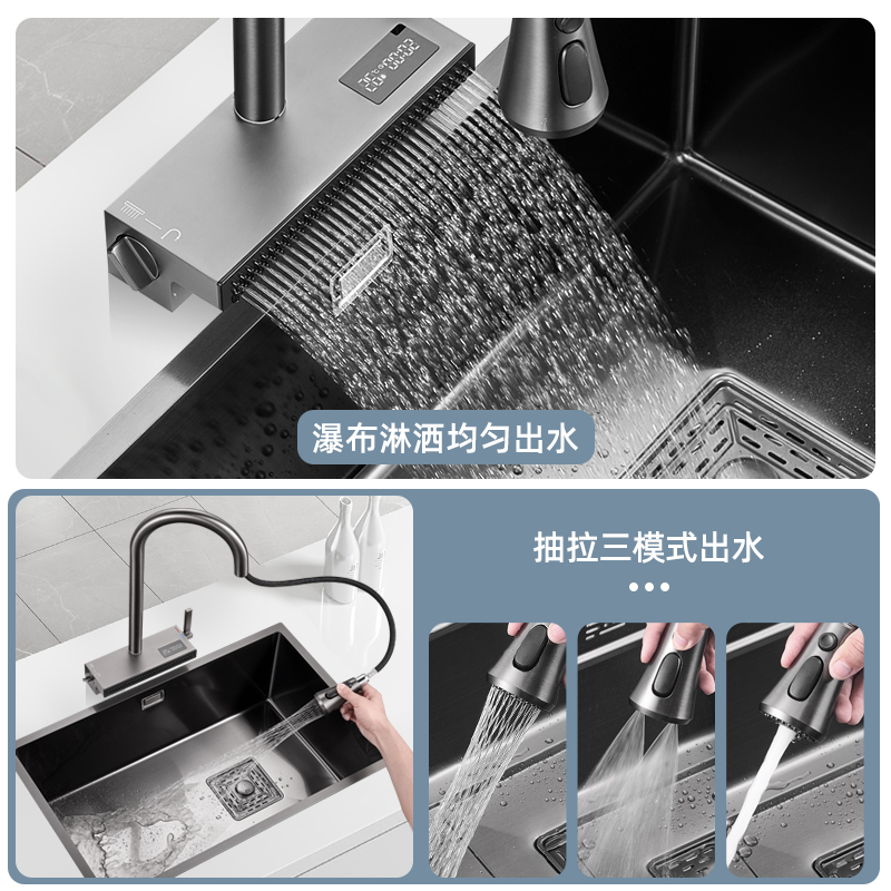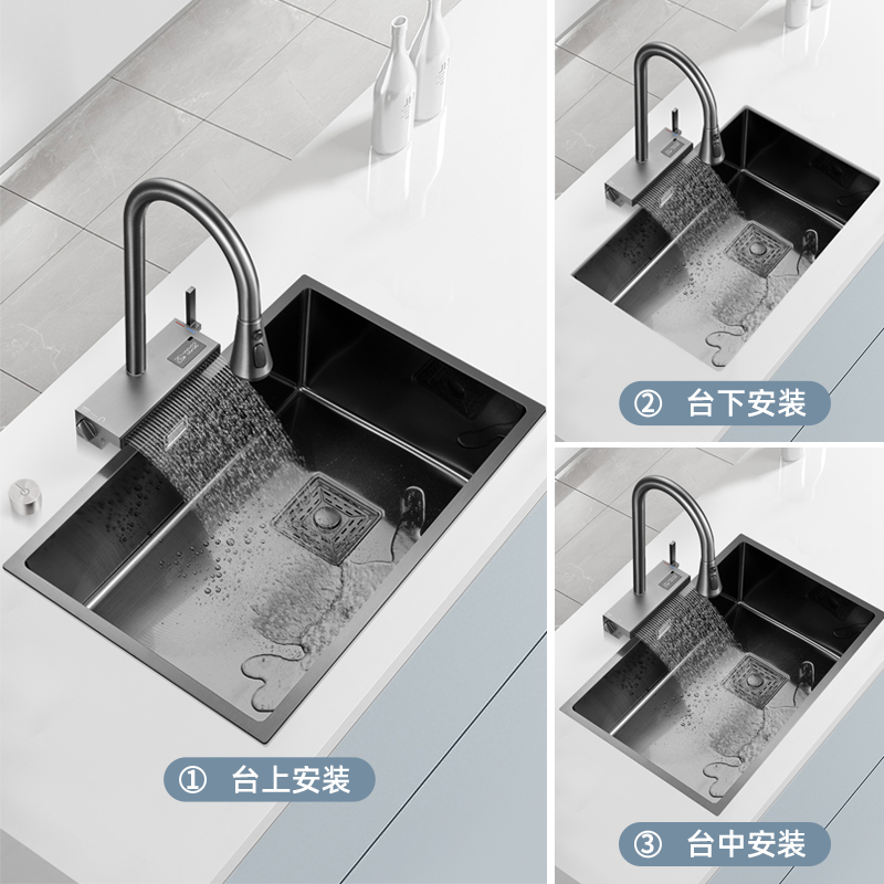 家用枪灰色槽大单槽洗碗池304不锈钢厨房嵌入式 台下洗菜盆