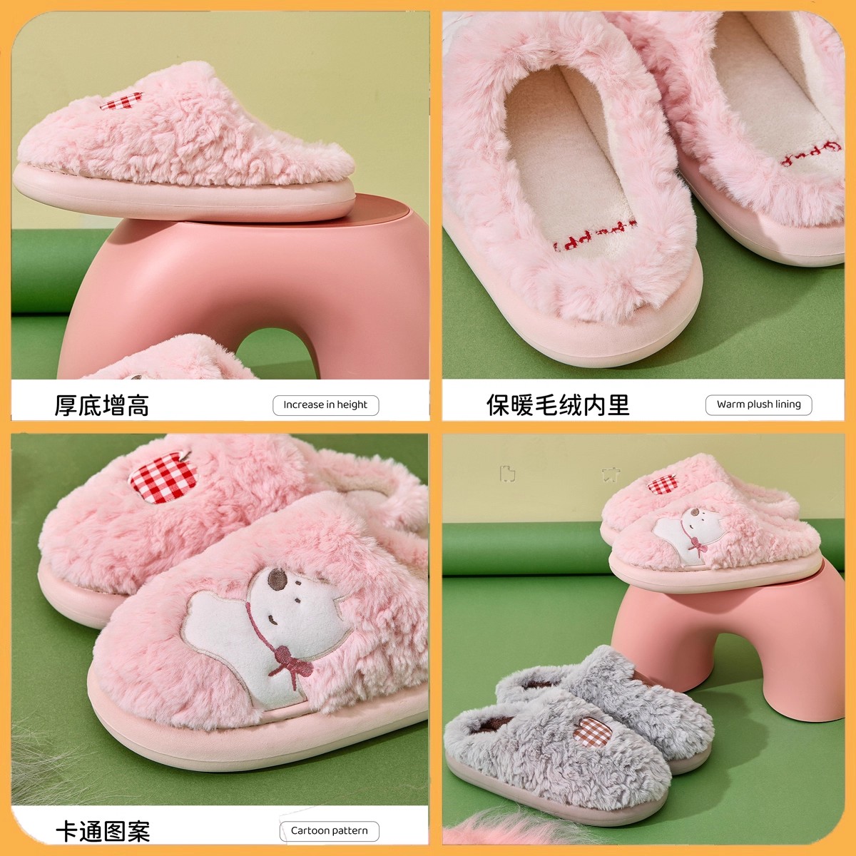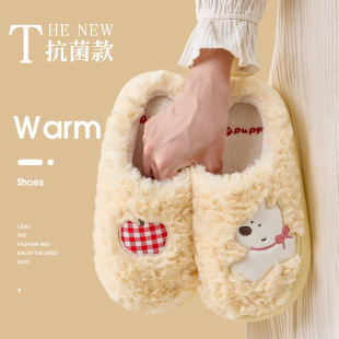 女款 秋冬天男士 2025新款 室内居家情侣保暖毛绒拖鞋 冬季 厚底棉拖鞋