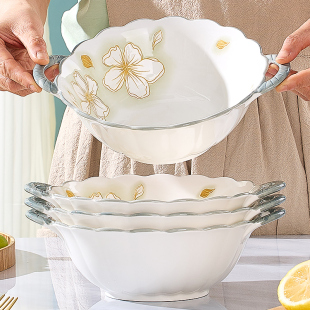 即物双耳汤碗泡面碗家用2025新款 奶油风大碗陶瓷釉下彩螺蛳粉碗具