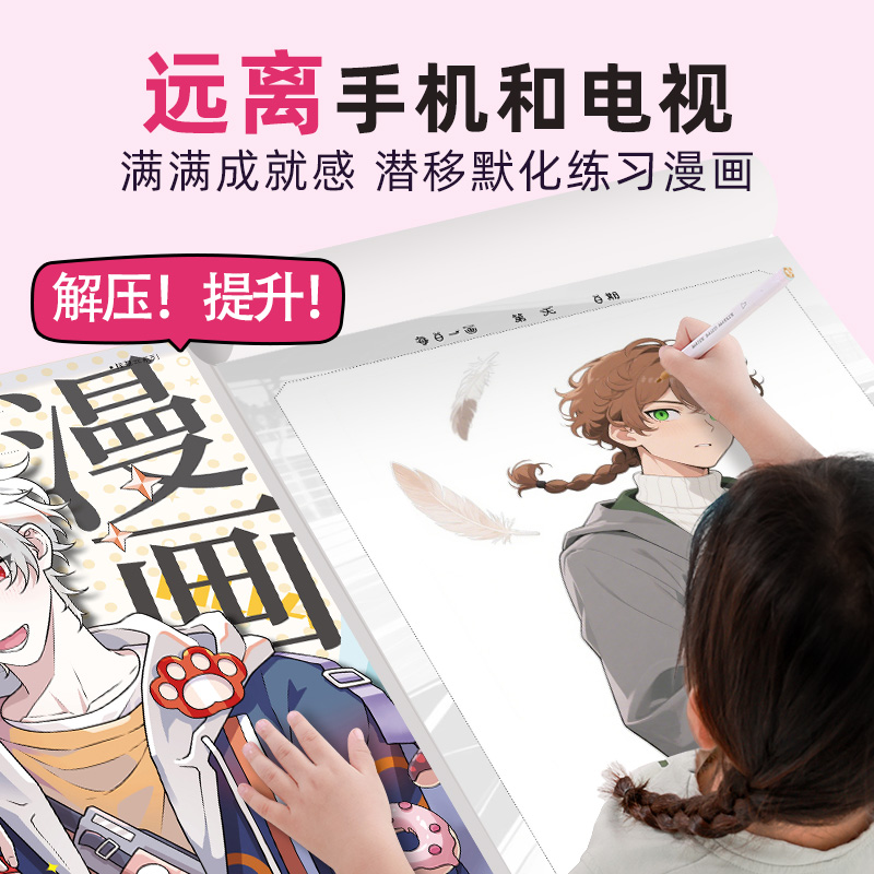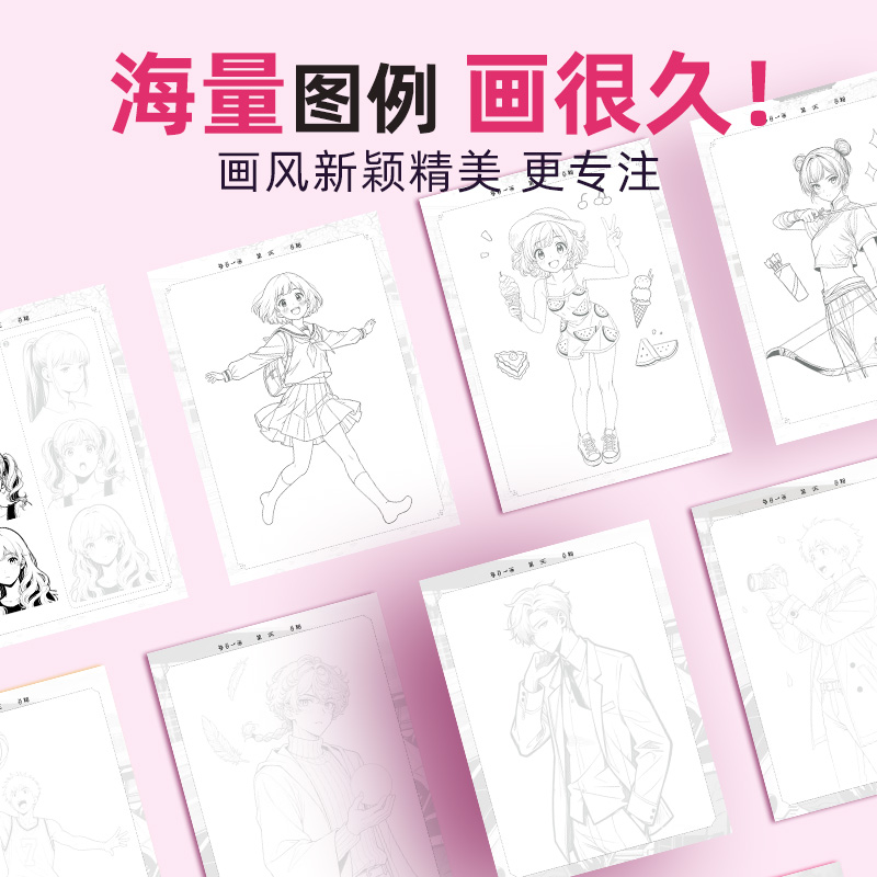 漫画手绘线稿描摹本动漫入门练习册临摹描画Q版 画本 人物美少女古风美少男画册少儿童控笔成人解压画画本素描画画图书套装