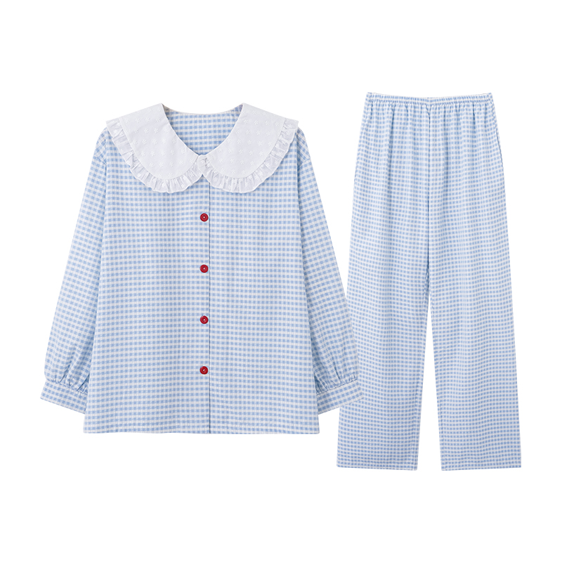 甜美公主风家居服套装 猫人云朵棉睡衣女款 双层纱布开衫 春秋季 长袖