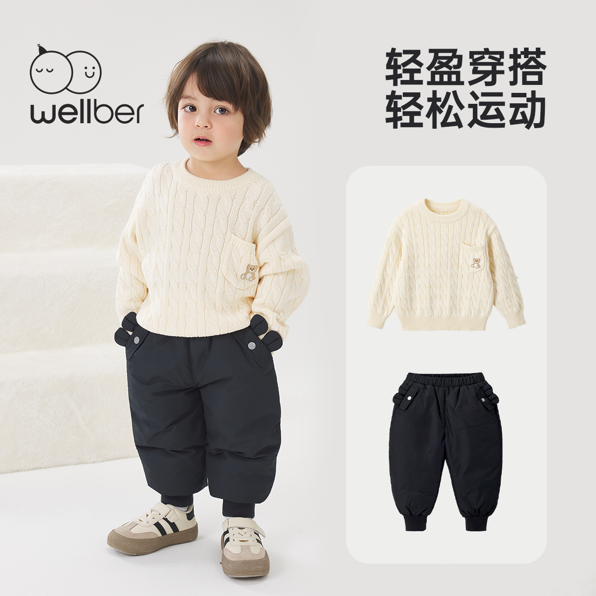 子儿童羽绒服男女童滑雪冬装 威尔贝鲁儿童羽绒裤 冬保暖宝宝加厚裤