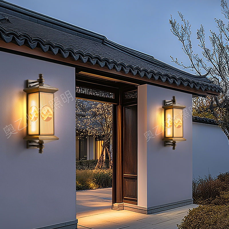 太阳能全铜壁灯户外防水庭院灯别墅花园围墙大门外墙灯室外阳台灯
