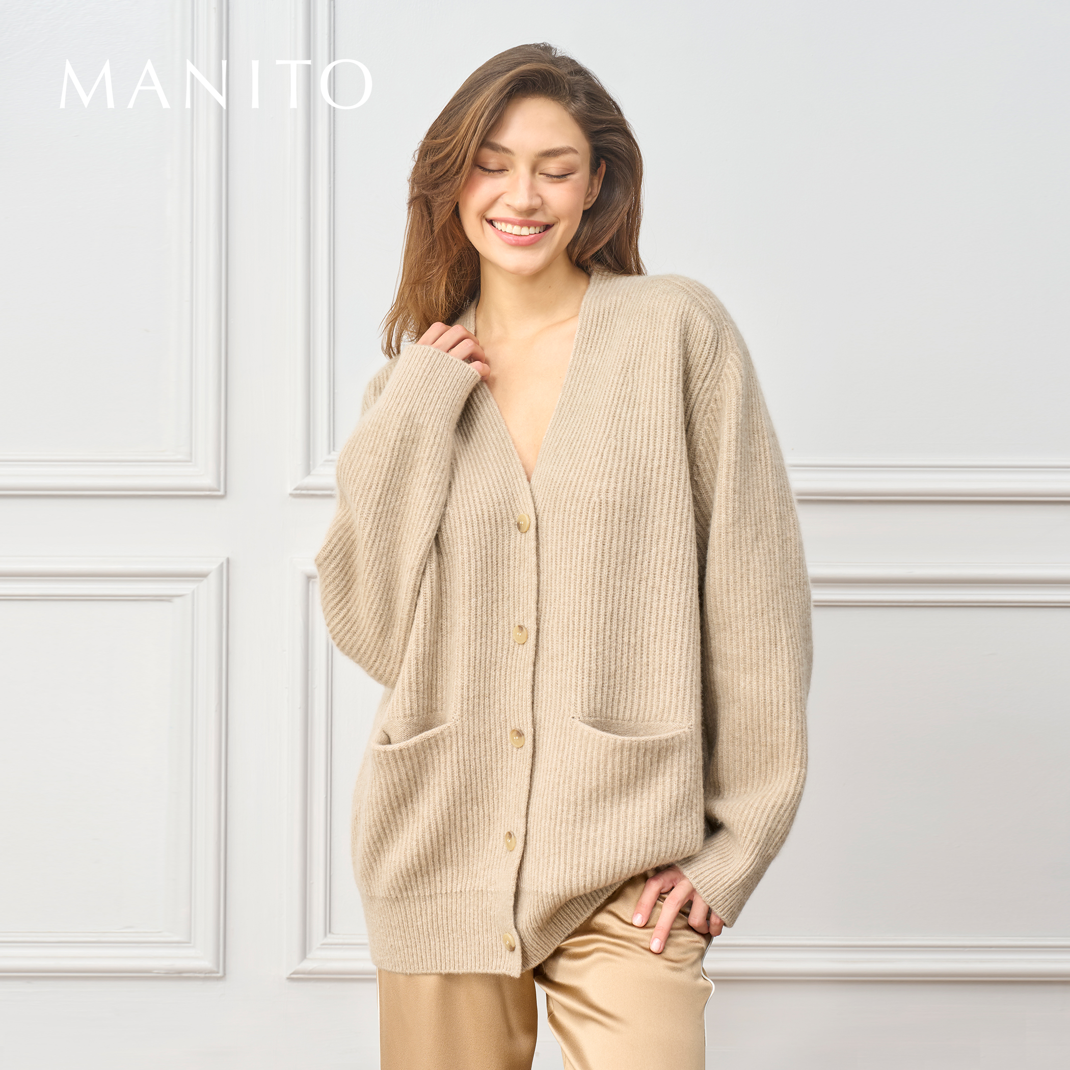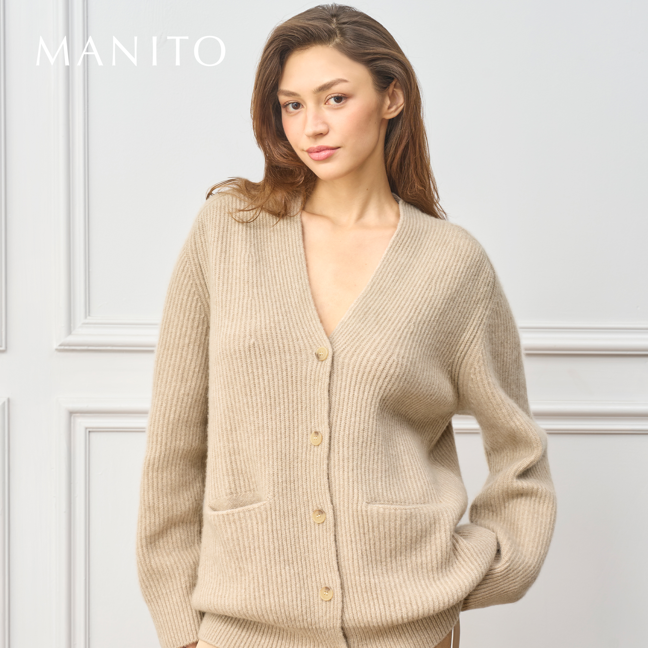 山羊绒桑蚕丝针织开衫 针织开衫 上衣V领 曼尼陀Wunder MANITO