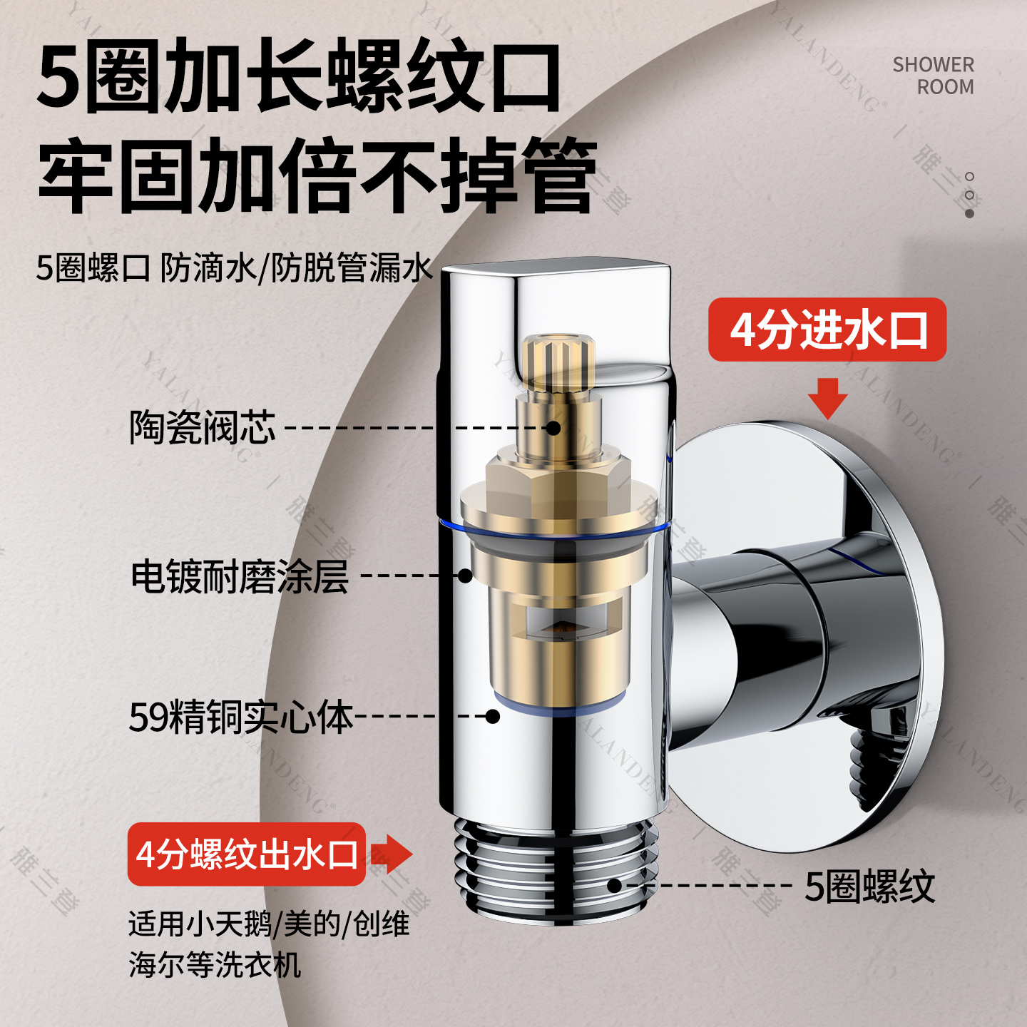 适用小天鹅海尔4分6分螺纹家用角阀防脱落全自动洗衣机极短水龙头