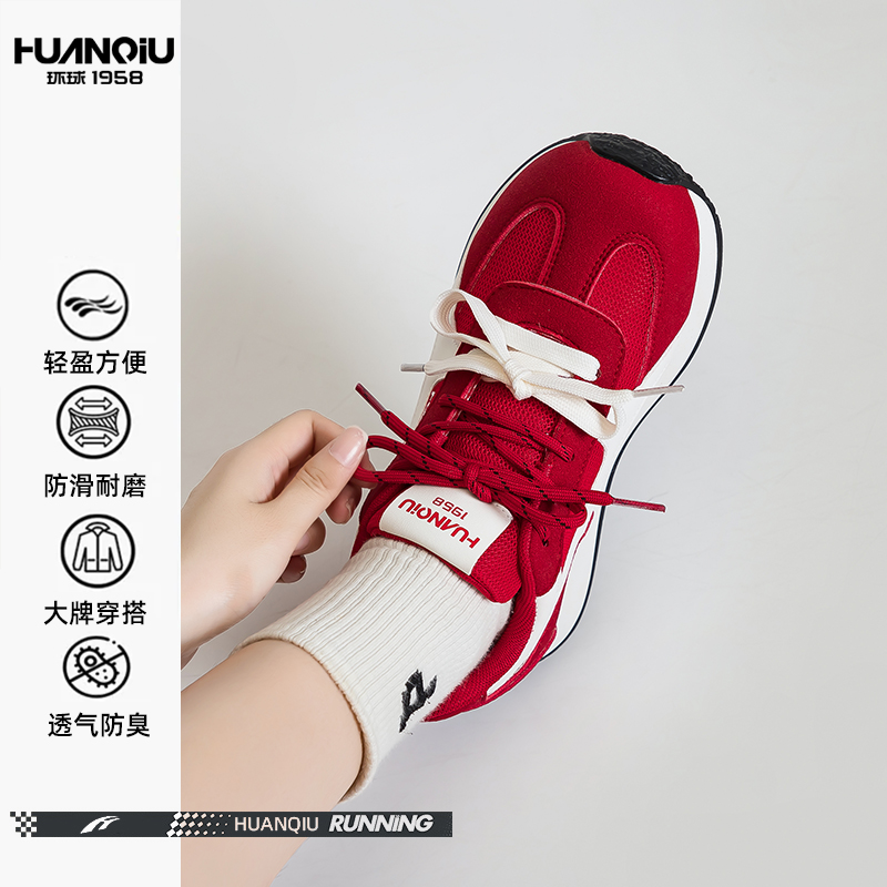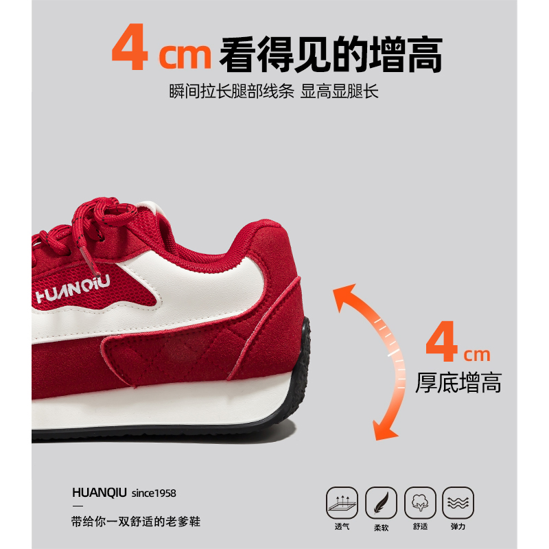 百搭ins风运动轻便舒适跑鞋 女透气老爹鞋 子德训阿甘鞋 环球红色鞋