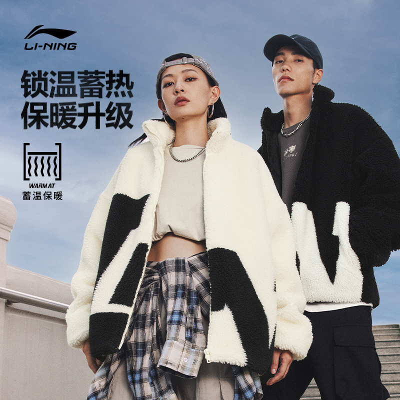 保暖羊羔绒外套情侣上衣AFDT947 宽松型秋冬新款 李宁男女同款 时尚