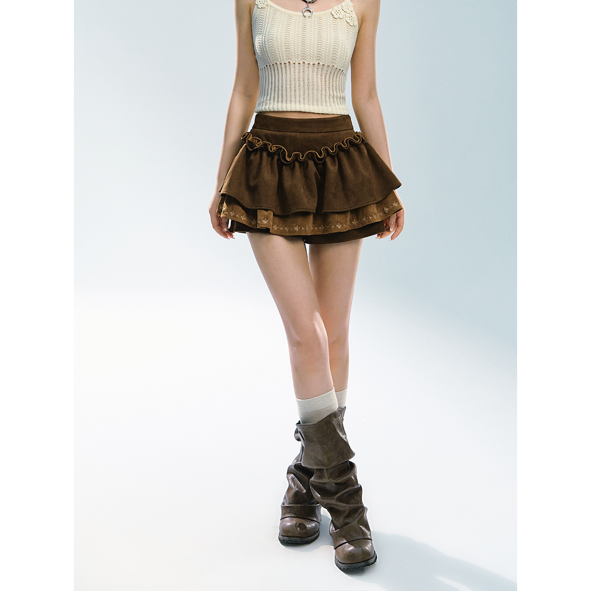 上衣夏 背心无袖 阔色白色蓬蓬裙蛋糕裙法式 半身裙女长裙子新25秋季