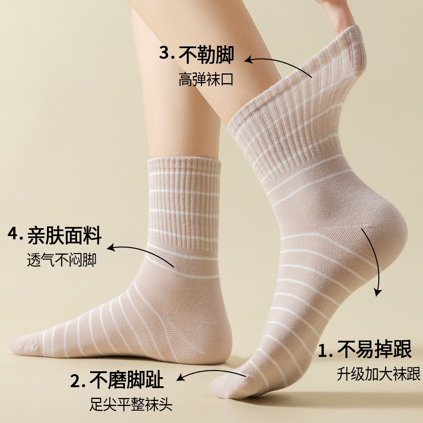 运动袜子女款 中筒袜女袜纯棉吸汗防臭棉袜长袜女士潮长筒袜 春秋季