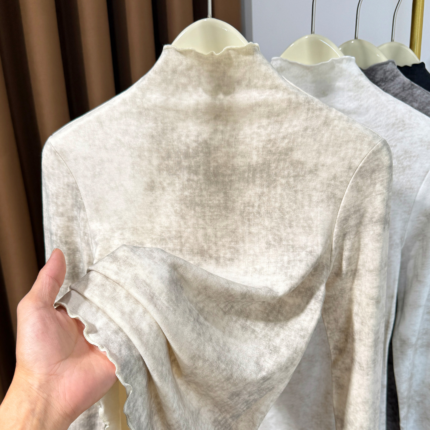 水墨扎染高级感内搭洋气小衫 木耳边半高领磨毛打底衫 女2025秋冬款