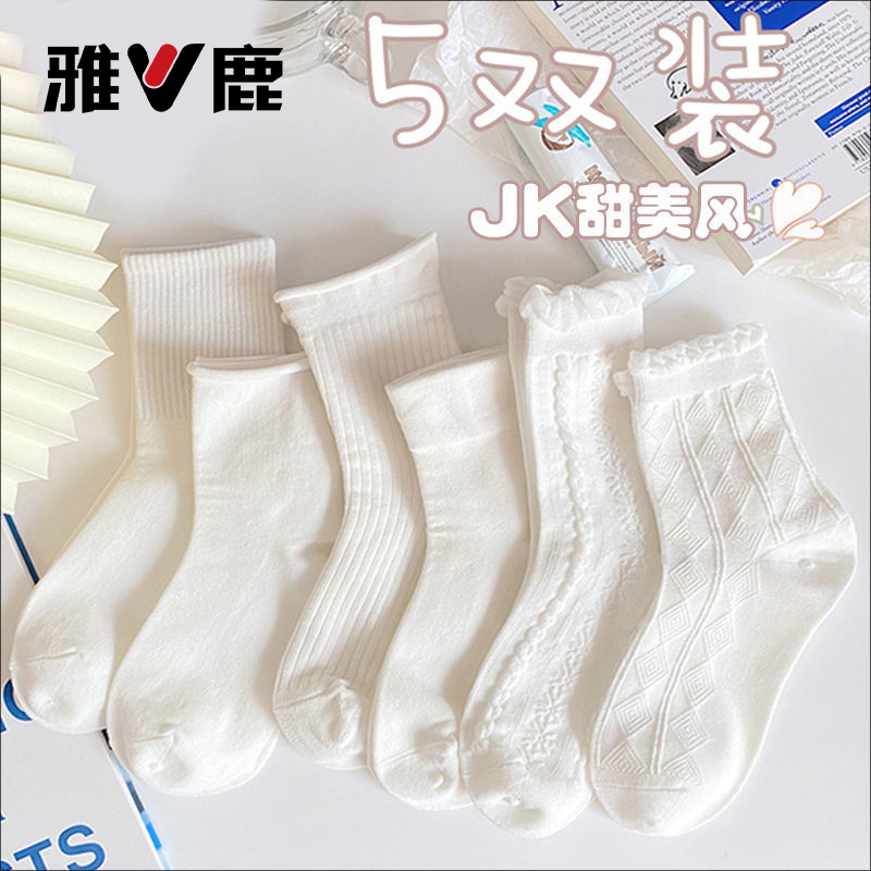 雅鹿白色袜子女春秋款 可爱日系jk袜lolita花边长袜百搭中筒袜夏季