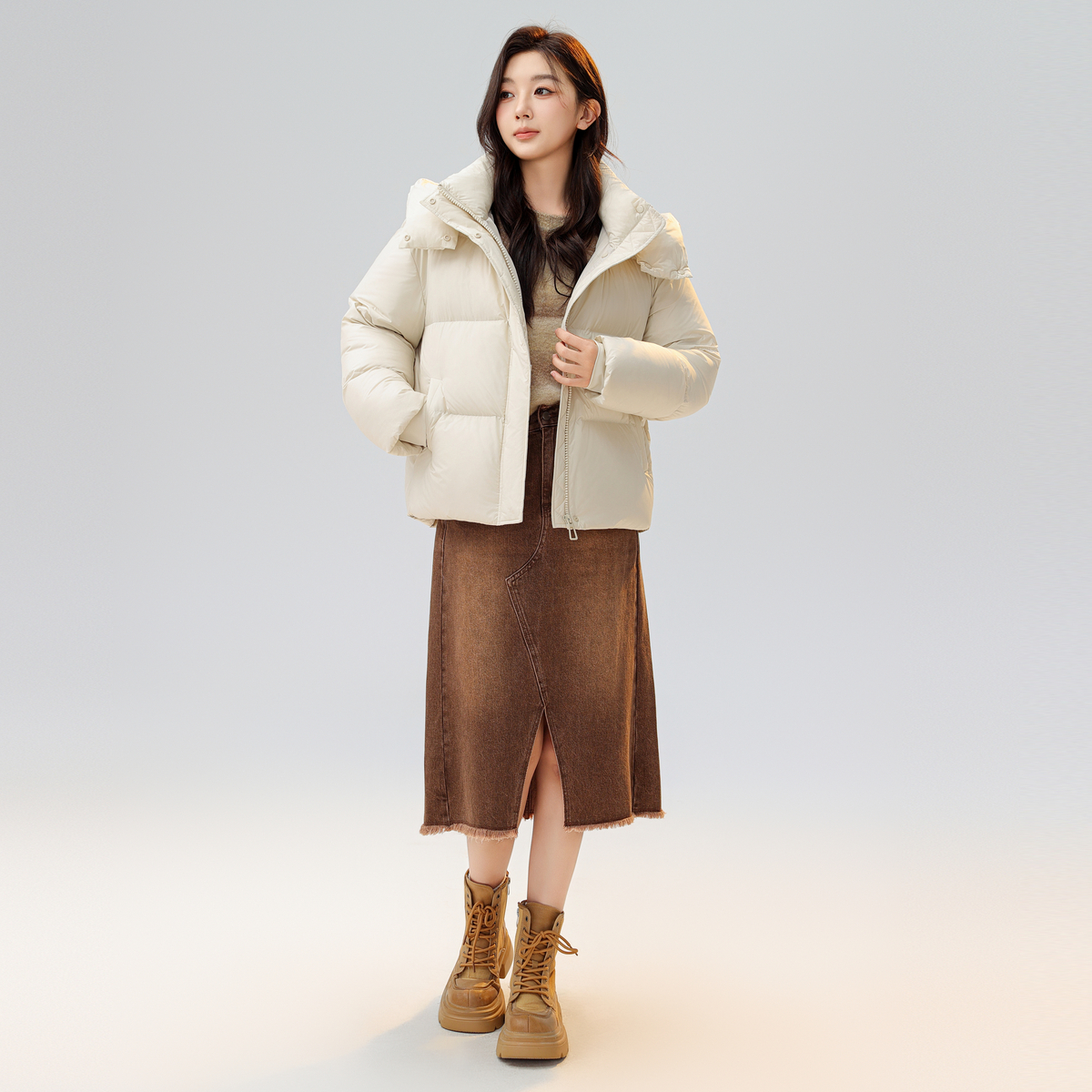 泡芙通勤时尚 羽绒服女小个子款 简约面包服 短款 雪中飞2025冬新款