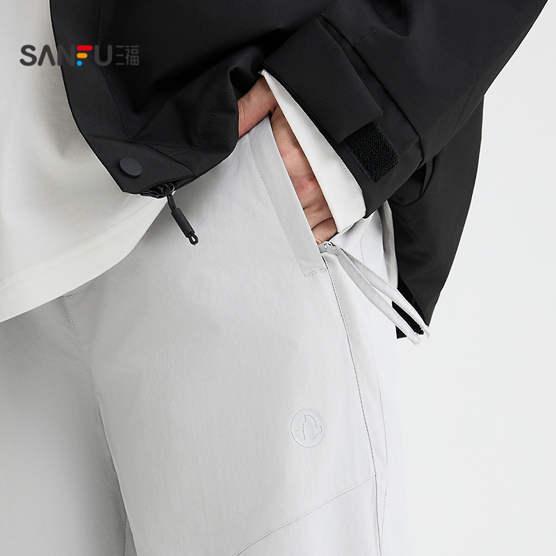 裤 男宽松橡筋腰直筒长裤 子 户外拉链口袋休闲裤 三福2025秋冬新款
