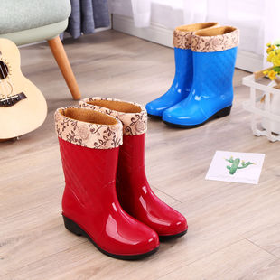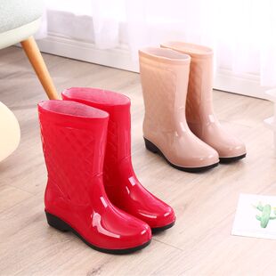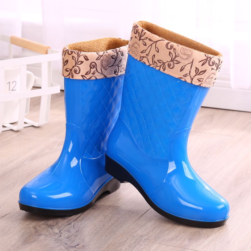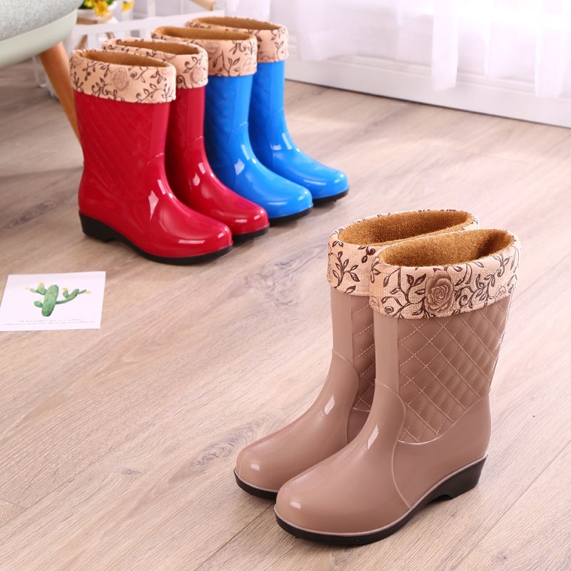 女 厨房耐磨保暖秋冬水靴水鞋 雨鞋 女士中筒厚底防滑加棉雨靴胶鞋