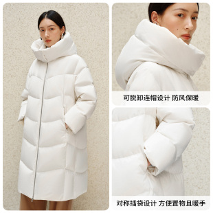 外套女 型显瘦加厚长款 艾莱依2025新款 羽绒服可脱卸连帽立体剪裁版