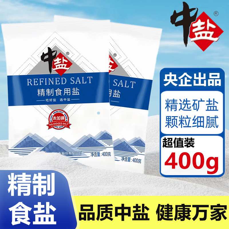 中盐精制食用盐家用日常烹饪调味炒菜厨房400g家用健康深井矿盐