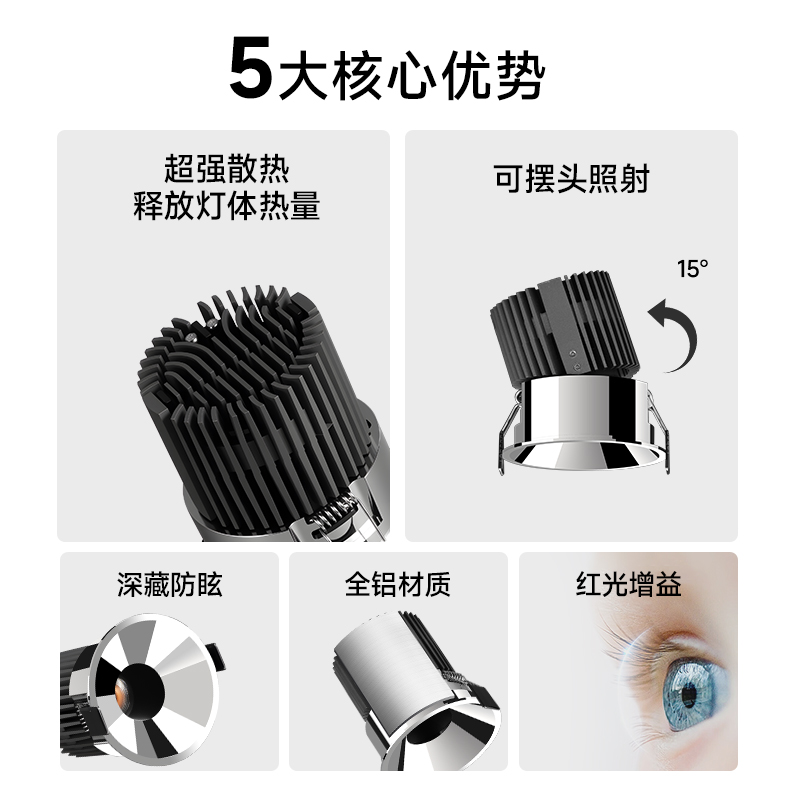 包豪斯射灯不锈钢银色亮面嵌入式 金属智能客厅led玄关无主灯中古