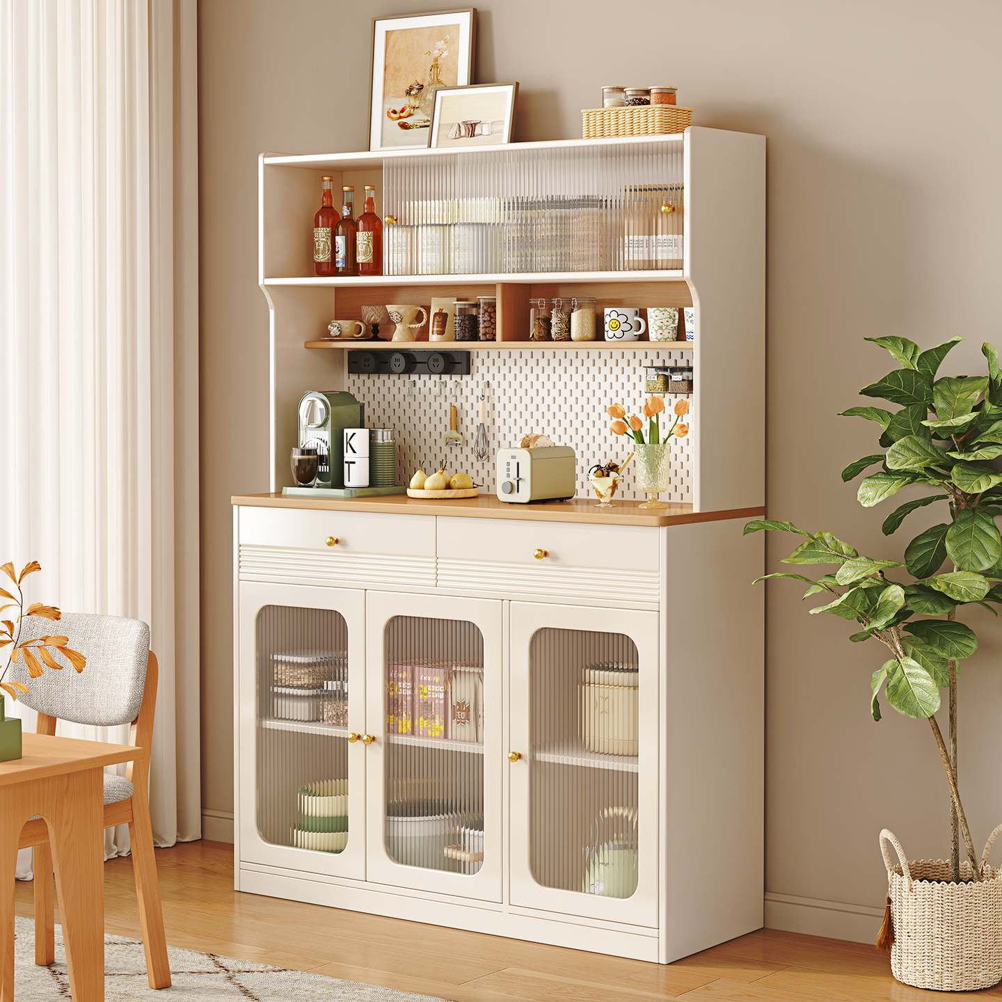 原木奶油风家庭餐边柜靠墙一体实木高柜小户型客厅酒柜茶水储物柜