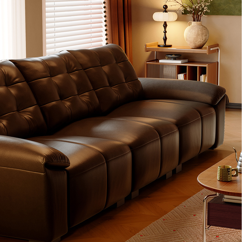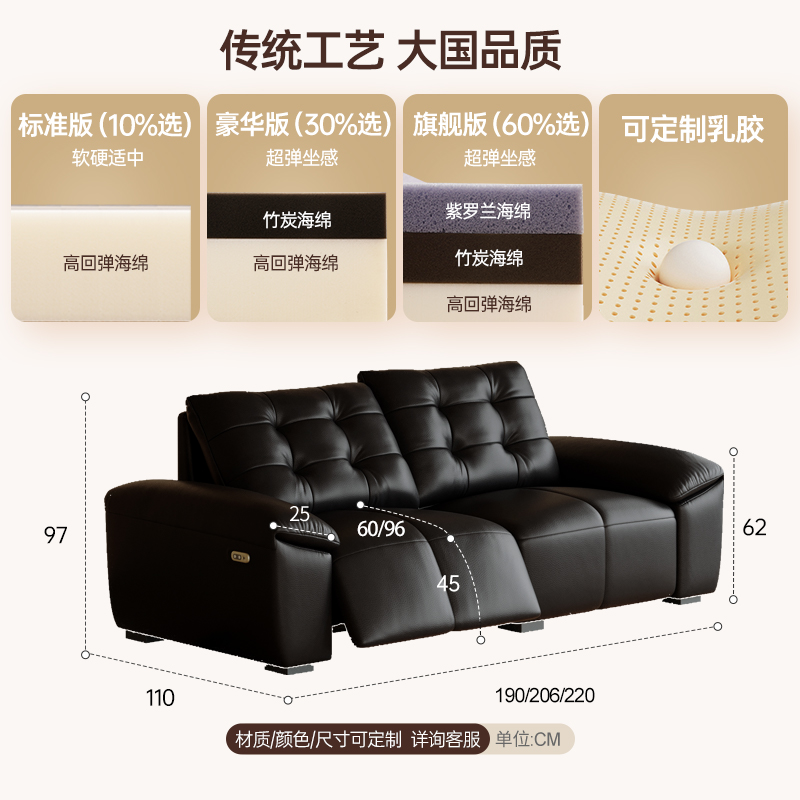 浪度黑天鹅0靠墙功能真皮沙发2025新款 中古风头层牛皮客厅黑色