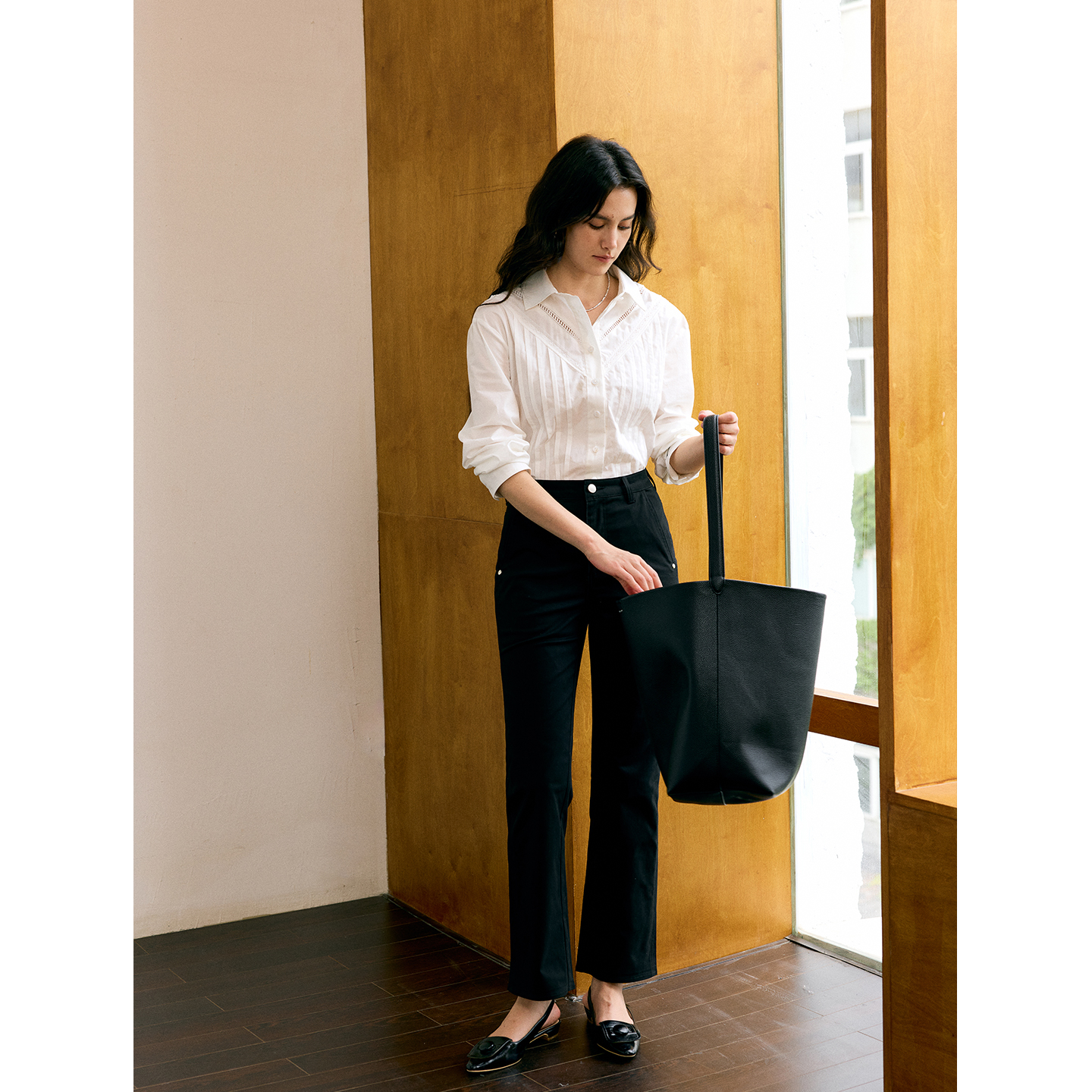 法式 女秋季 高腰显瘦九分裤 直筒裤 子 HeyDress弹力修身 百搭裤 小黑裤