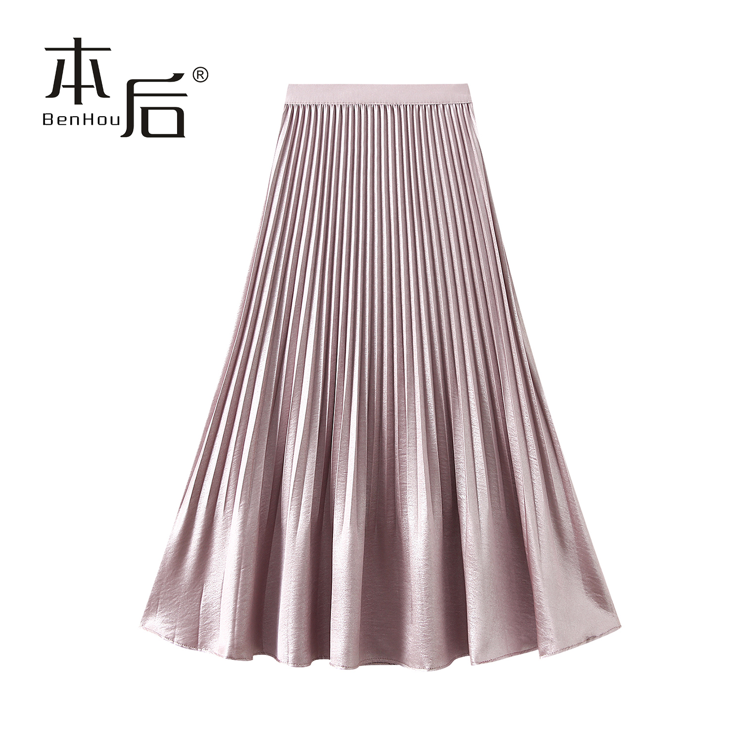COCOBELLA丝光缎面压褶半身裙秋温柔风垂顺遮胯筒裙HS7026