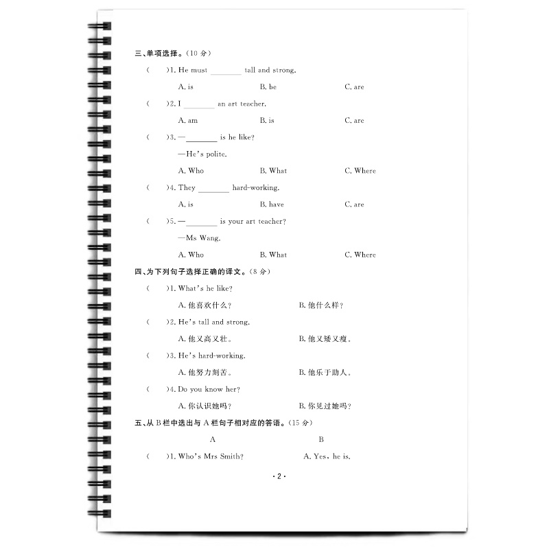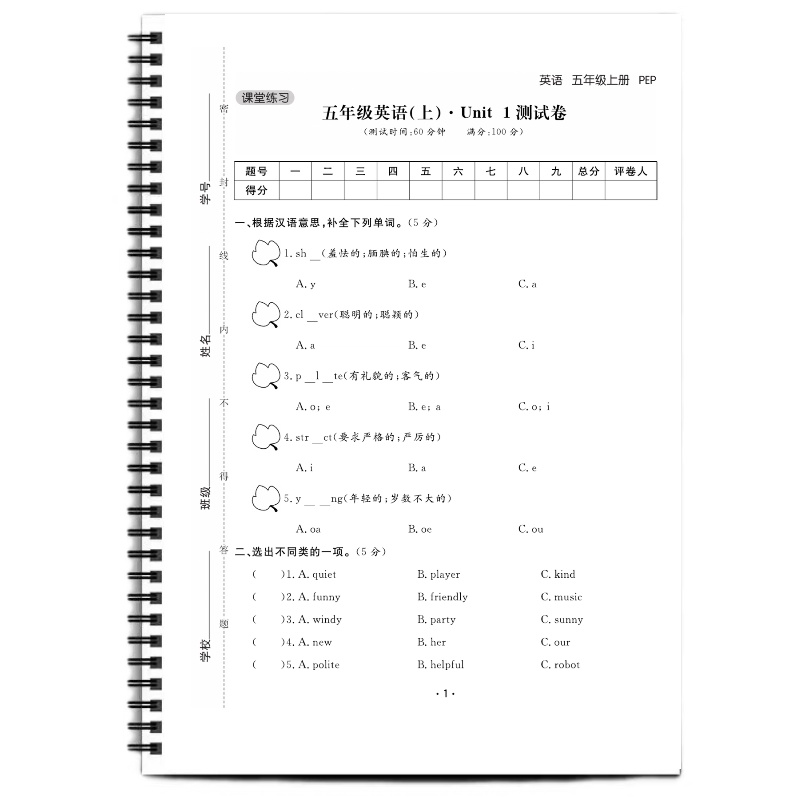 PEP五上英语单元 测试随堂练含答案同步教材知识点查漏补缺课堂练习必备资料综合训练单词满分汉语