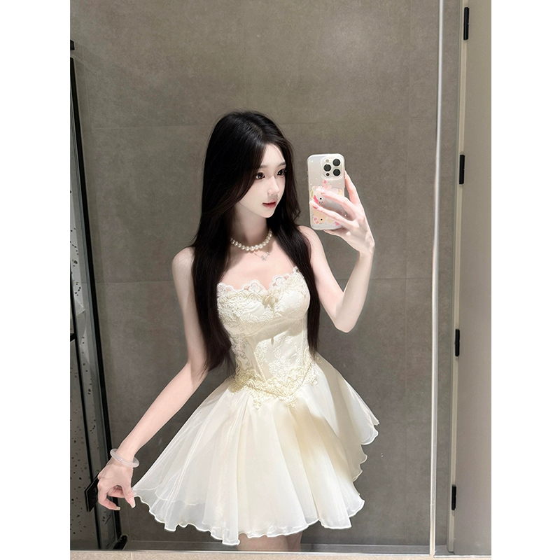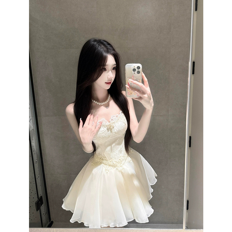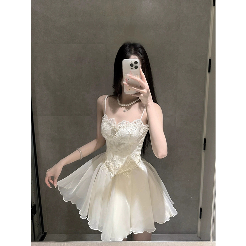 XZY 纯欲温柔公主蓬蓬裙 微胖芭蕾风蕾丝拼接吊带连衣裙女25年夏季