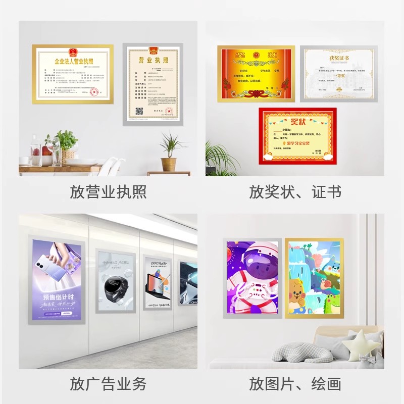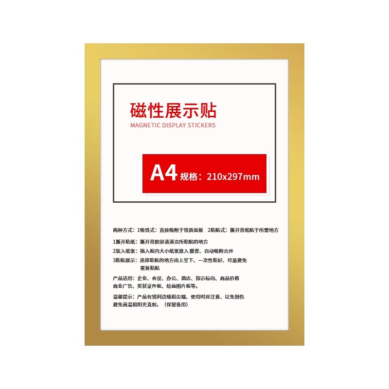 磁性展示贴a4相框营业执照保护套软磁贴磁力a3贴牌墙面8k文件框海报框荣誉框挂墙倒计时背胶免打孔边框图片