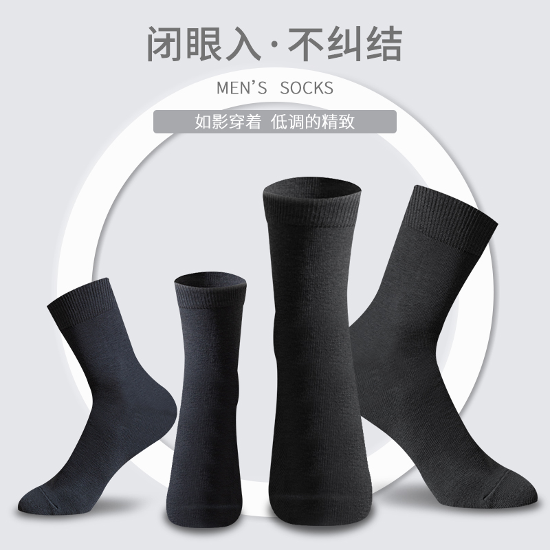 商务长袜运动棉袜 中筒袜纯棉防臭吸汗男袜黑色西装 袜子男士 春秋款