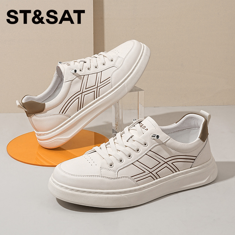 新款 男士 白色休闲鞋 男鞋 男款 2025秋季 黑色板鞋 星期六休闲皮鞋 潮鞋