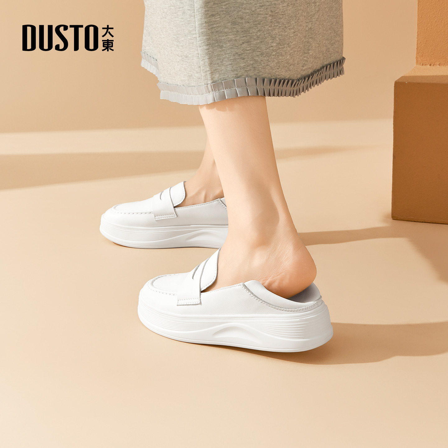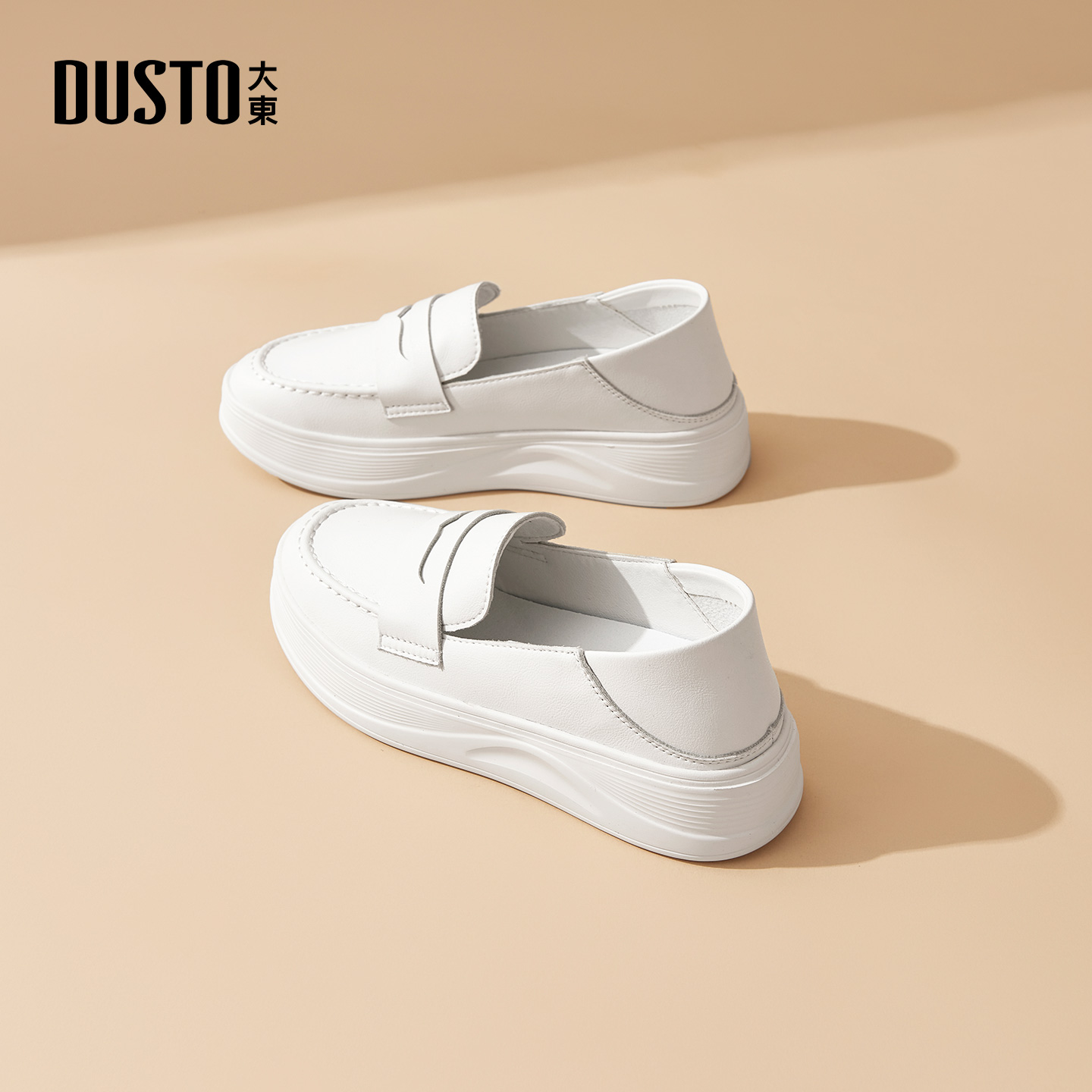 百搭小白鞋 大东官方厚底白色乐福鞋 软底一脚蹬单鞋 秋季 女2025新款