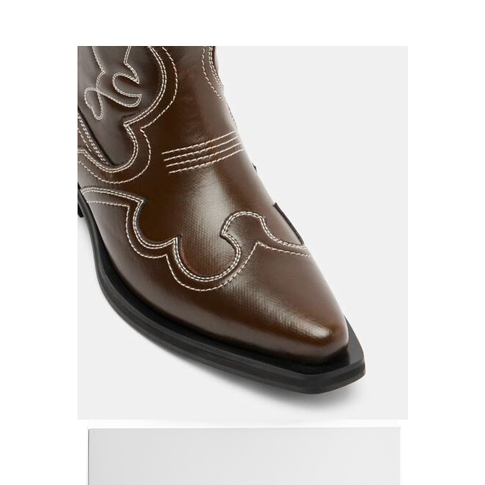 潮奢 中筒刺绣牛仔靴子厚底鞋 GANNI 女士 中筒靴 甘尼 1h可退