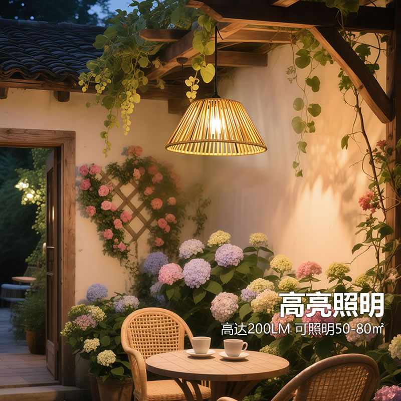太阳能户外照明灯家用2025新款 分体室内阳光房凉亭灯吊挂阳台藤编