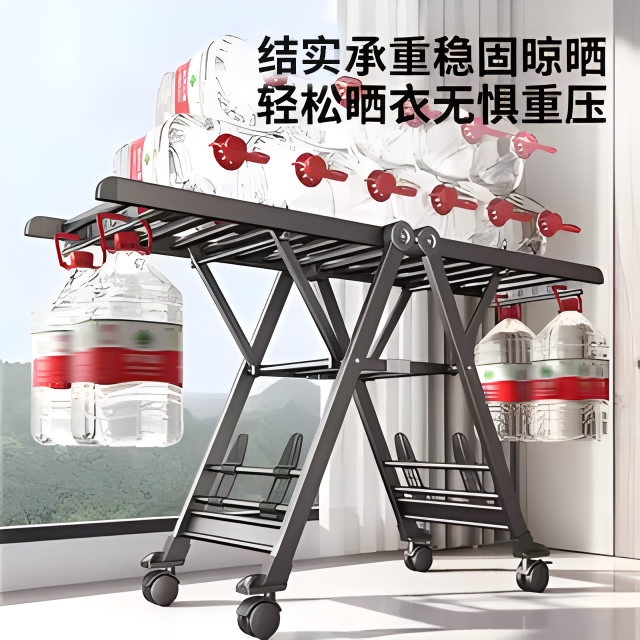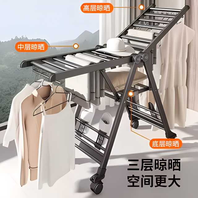 折叠晾衣架落地家用凉衣杆阳台晒衣架铝合金升降挂衣架晒被子神器